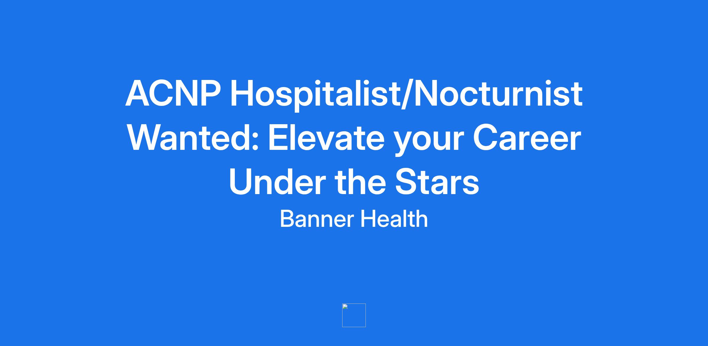 **Banner Health, a Top 5 Large Health System and one of the country's premier non-profit health care networks** is seeking an **Acute Care Nurse Practitioner** to join a team of Hospitalists withBanner Gateway Medical Centerisone of the country's premier non-profit health care networks is expanding its team of Advanced Practice Providers in the Phoenix Metro Area.Banner Health is recognized for its leadership and dedication to the communities we serve.