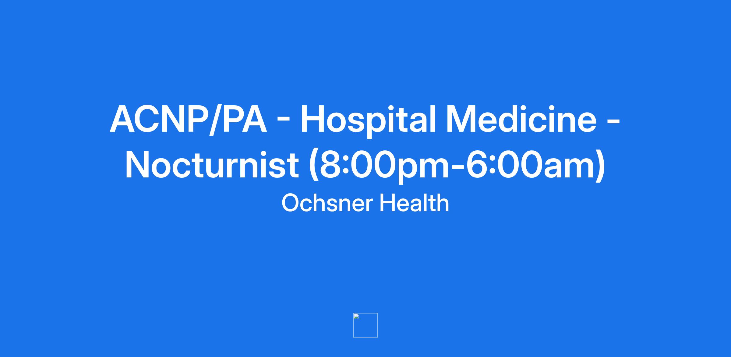 ACNP/PA - Hospital Medicine - Nocturnist (8:00pm-6:00am)