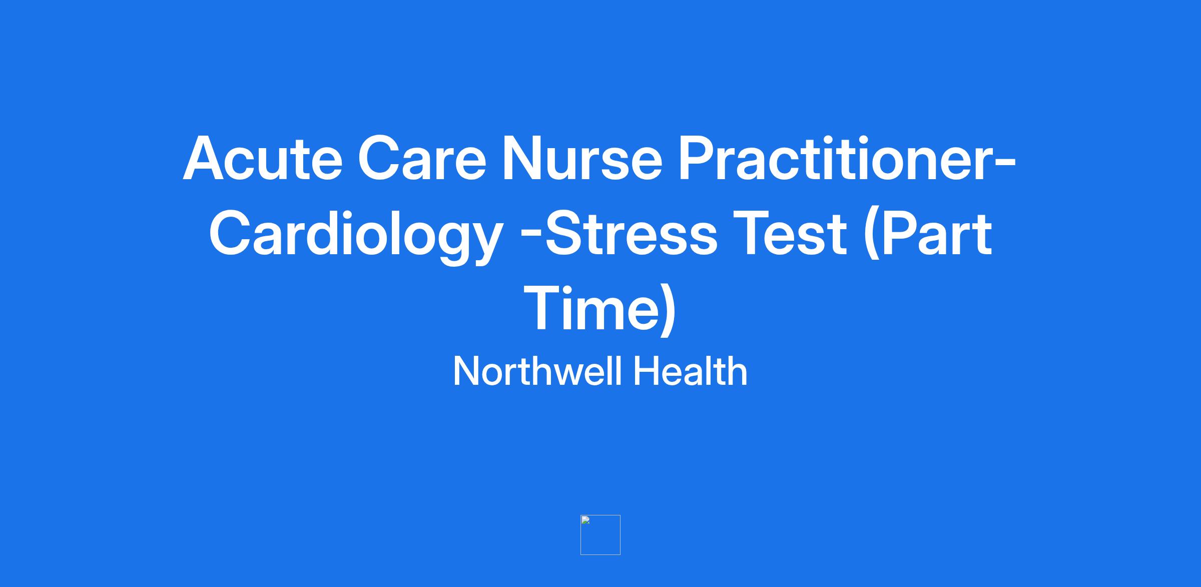 Acute Care Nurse Practitioner- Cardiology -Stress Test (Part Time)