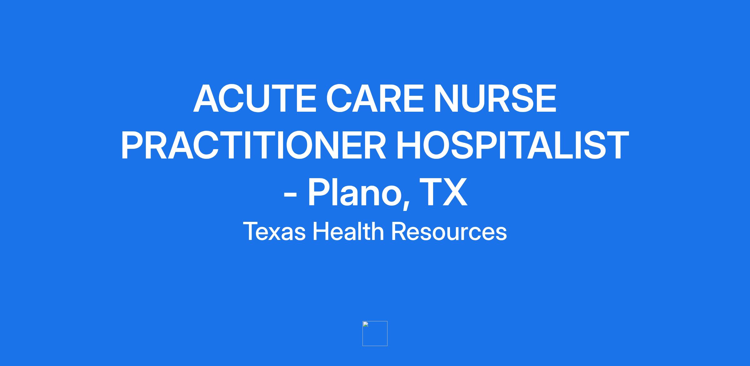 Texas Health Physicians Group is pleased to announce a **Nurse Practitioner** , Hospitalist opening for a full-time opportunity in Plano, TX. Expand your career by working closely with a successful group of hospitalists evaluating, diagnosing and treating a variety of patients.