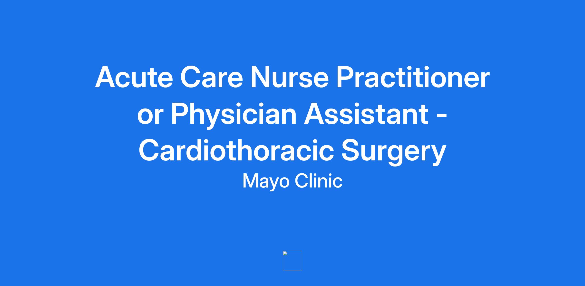 Acute Care Nurse Practitioner or Physician Assistant - Cardiothoracic Surgery