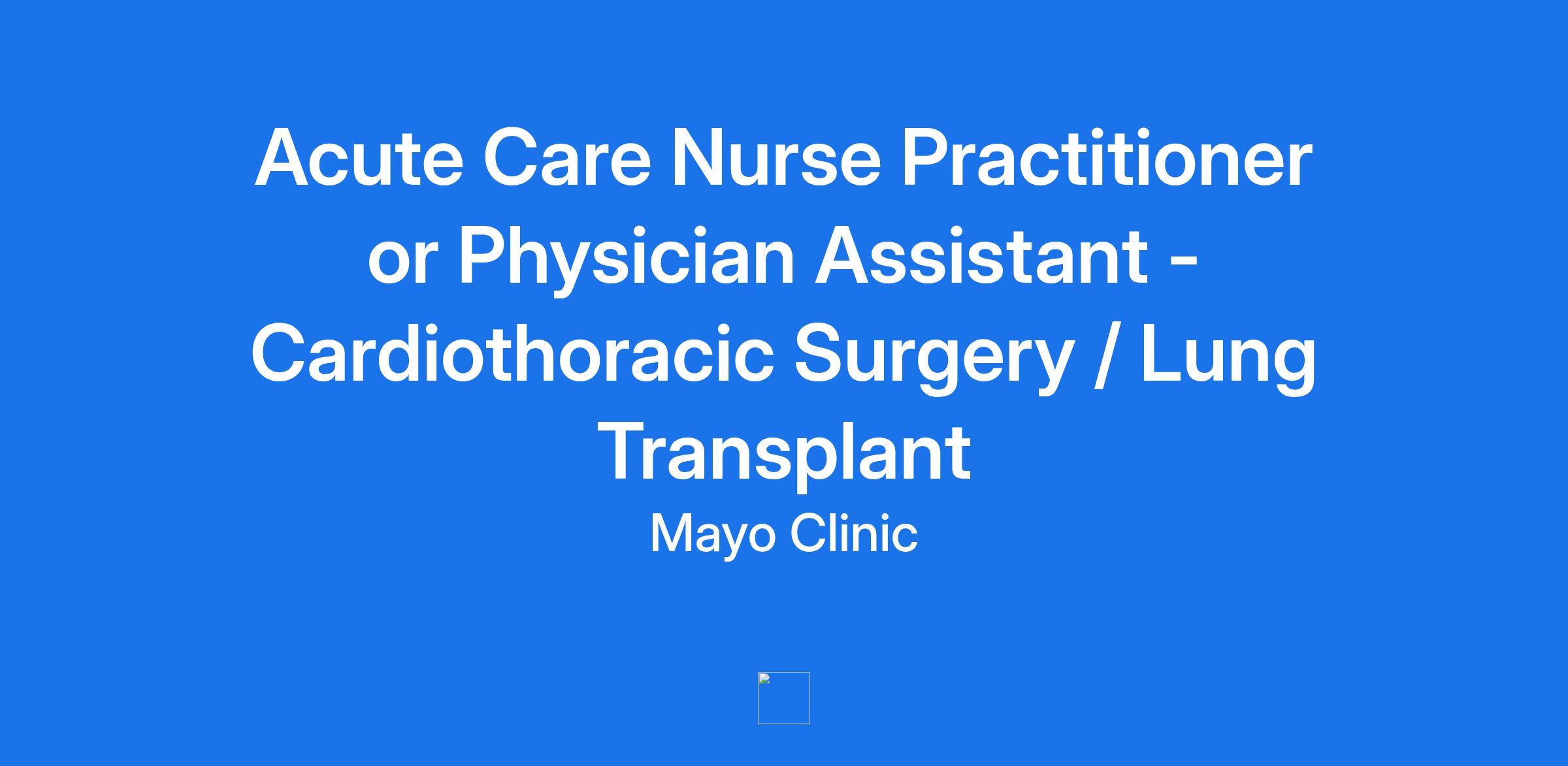 Acute Care Nurse Practitioner or Physician Assistant - Cardiothoracic Surgery / Lung Transplant