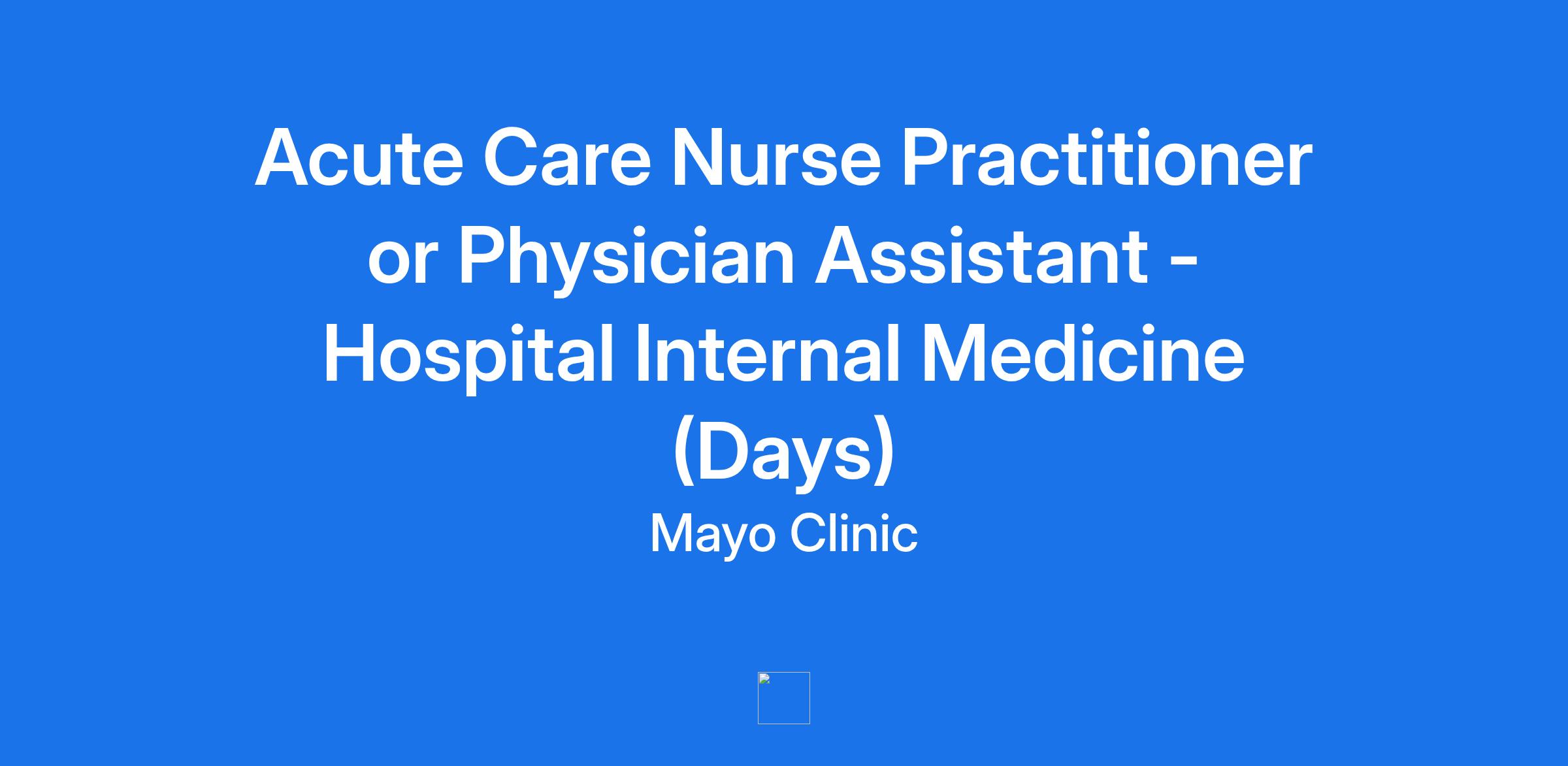 Acute Care Nurse Practitioner or Physician Assistant - Hospital Internal Medicine (Days)