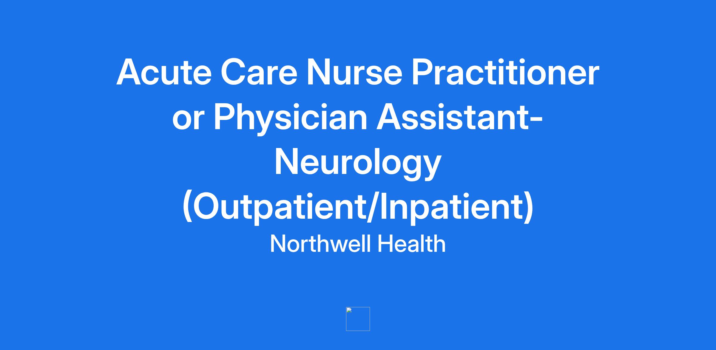 Acute Care Nurse Practitioner or Physician Assistant- Neurology (Outpatient/Inpatient)