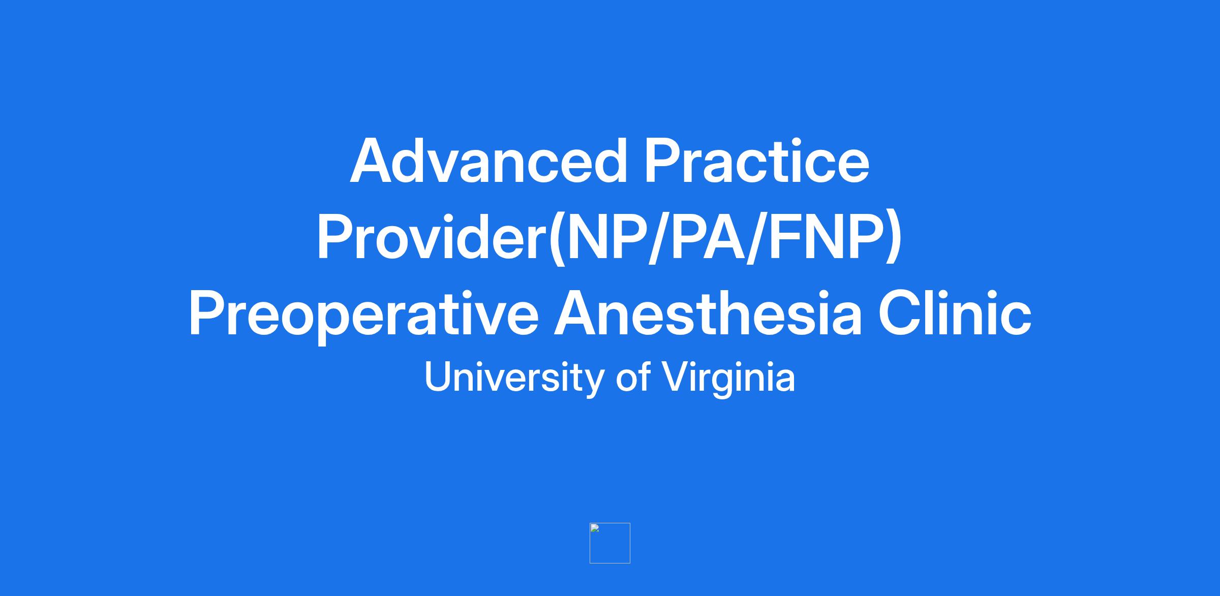 Licensure: License or license eligible as an Advance Practice Provider (Nurse Practitioner, Physician Associate, Certified Registered Nurse Anesthetist, and Certified Nurse Midwife) as set forth by the state of Virginia. If Nurse Practitioner, license to Practice as a Registered Nurse in the Commonwealth of Virginia is required. Must demonstrate and maintain all credentialing and licensing requirements of UVA Health System, the Virginia Board of Medicine or the Virginia Board of Nursing, and appropriate certifying bodies. Current Basic Life Support (BLS) required. Current PALS/NRP, as required, specific to position. Advanced Cardiac Life Support (ACLS) as required, specific to position.