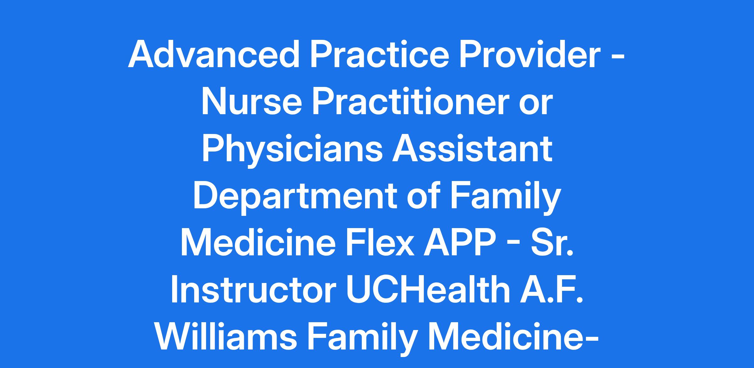 Advanced Practice Provider - Nurse Practitioner or Physicians Assistant Department of Family Medicine Flex APP - Sr. Instructor UCHealth A.F. Williams Family Medicine-Central Park