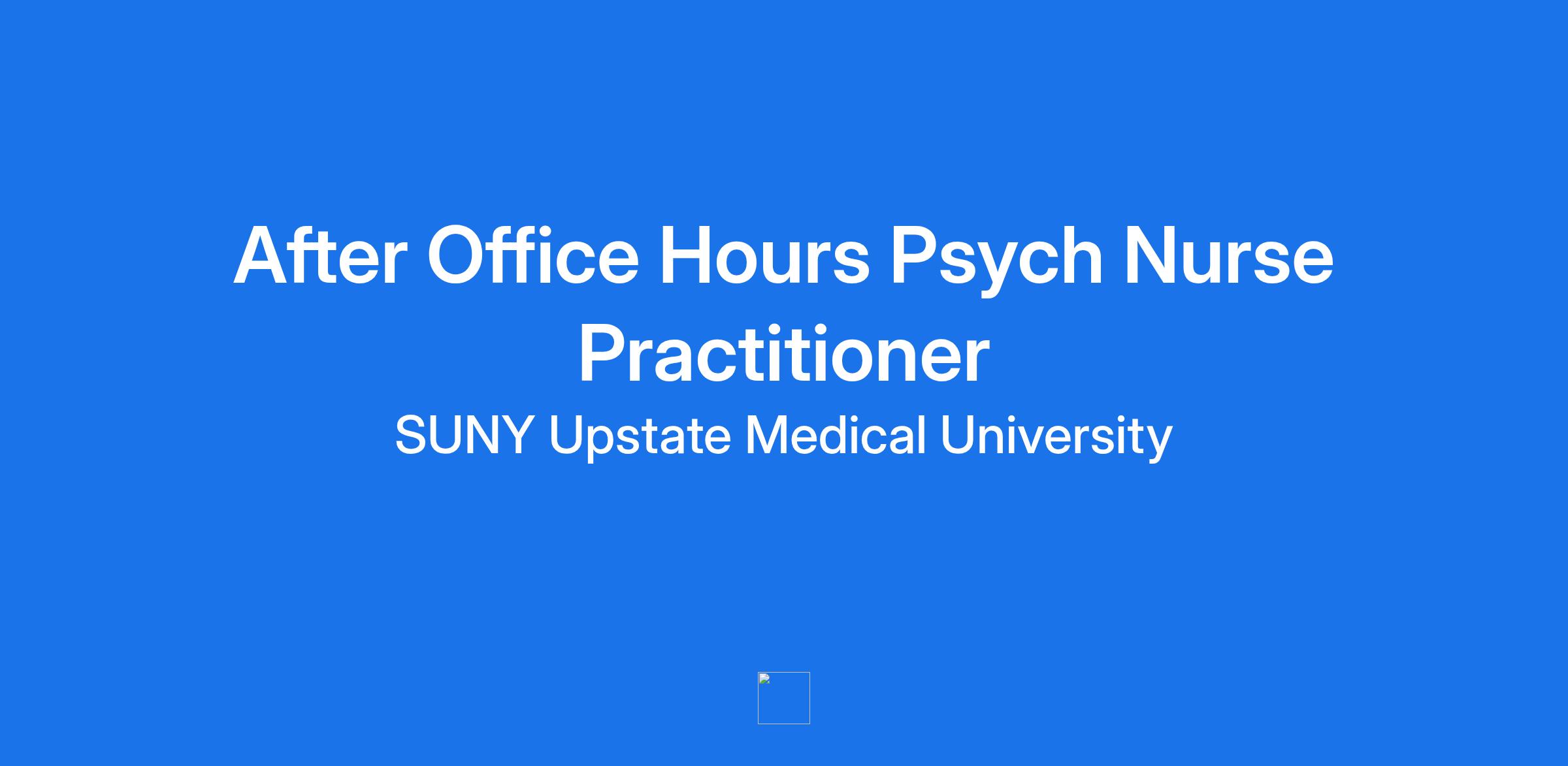 SUNY Upstate is seeking a highly skilled and motivated Psychiatric Nurse Practitioner to join our new Behavioral and Mental Health Initiative providing support to our Pediatric and Adolescent Psych After Hours program at SUNY Upstate Nappi Wellness Institute.