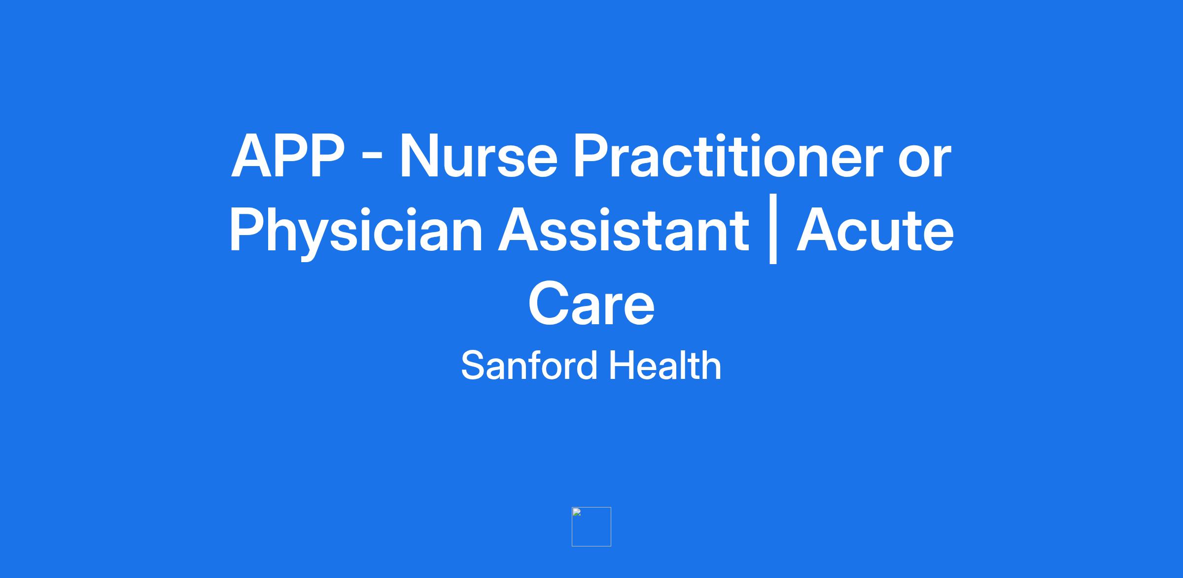 APP - Nurse Practitioner or Physician Assistant | Acute Care