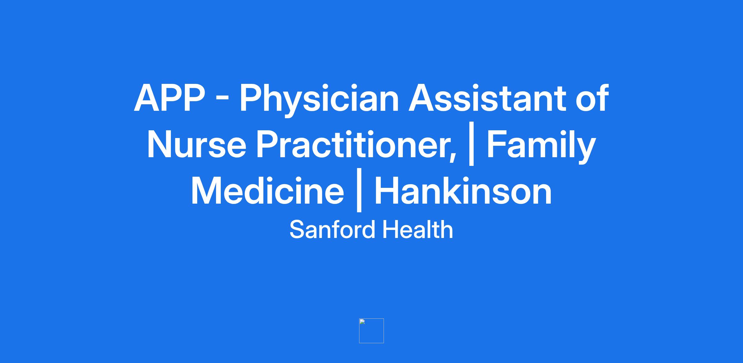 APP - Physician Assistant of Nurse Practitioner, | Family Medicine | Hankinson