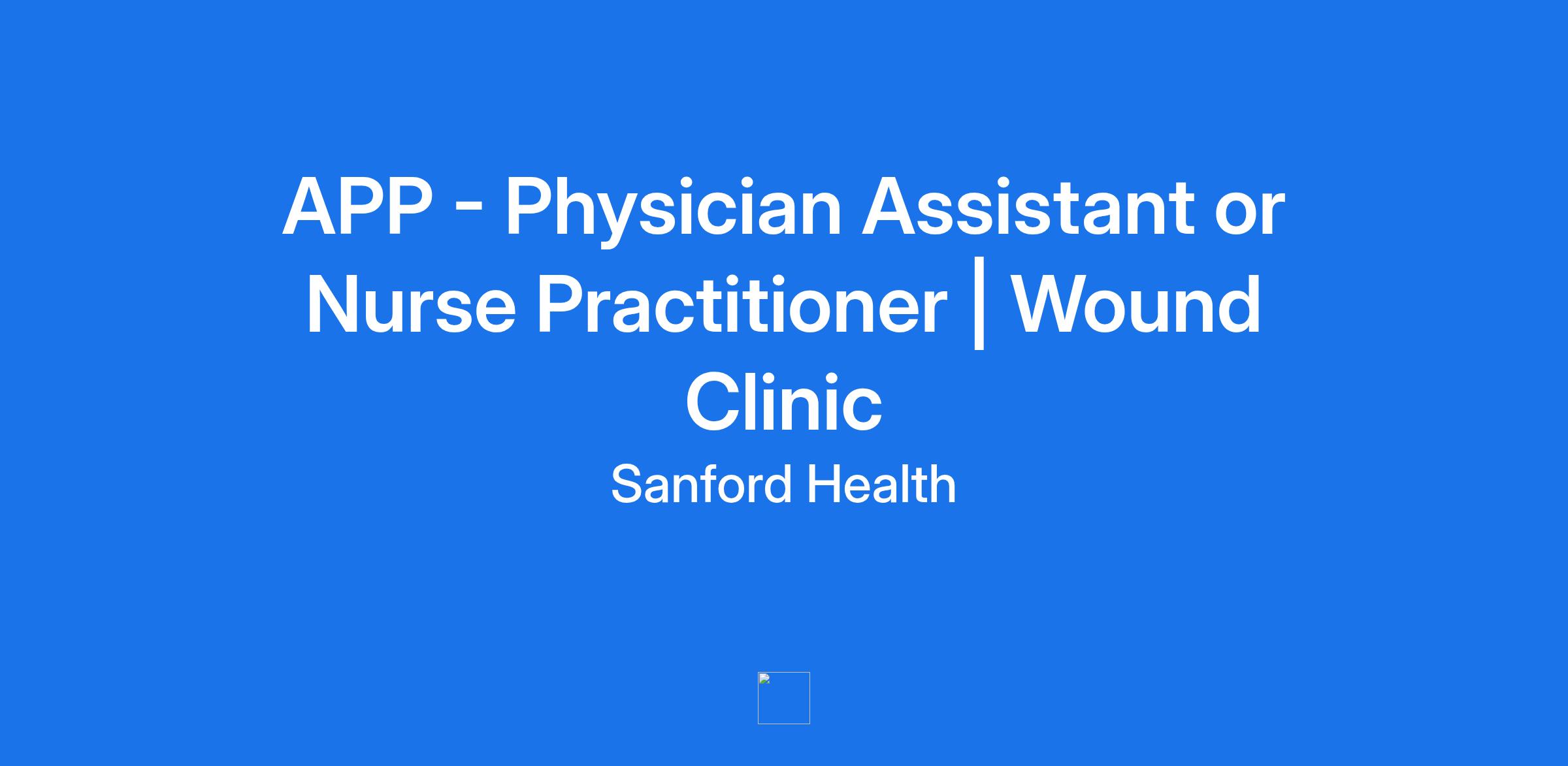APP - Physician Assistant or Nurse Practitioner | Wound Clinic