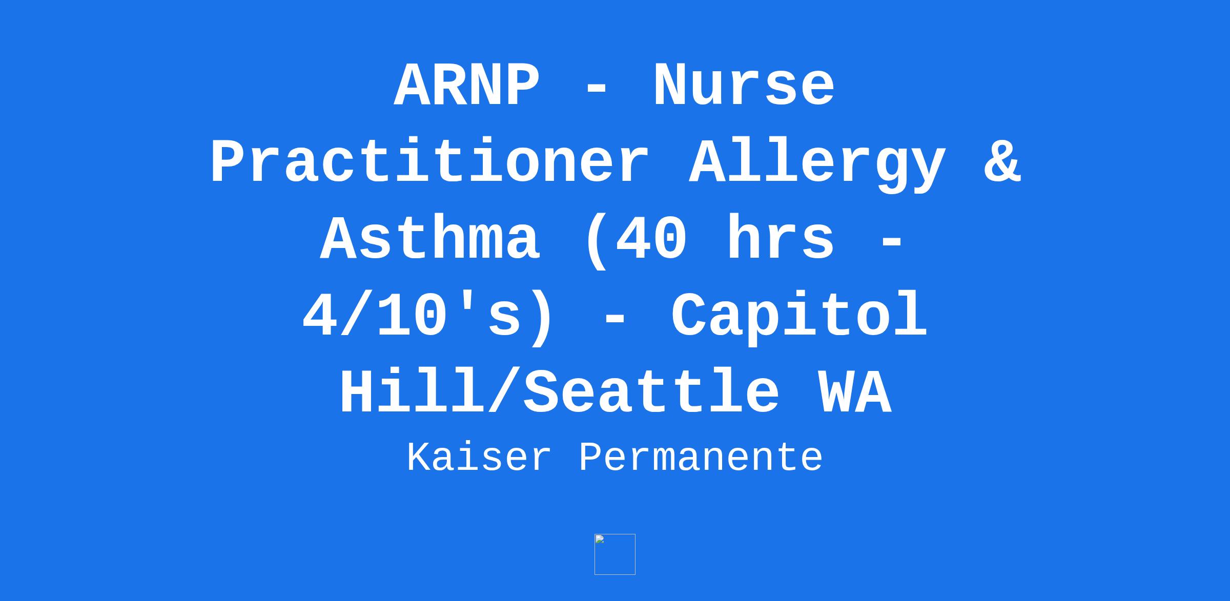TITLE: ARNP - Nurse Practitioner Allergy & Asthma (40 hrs - 4/10's) - Capitol Hill/Seattle WA