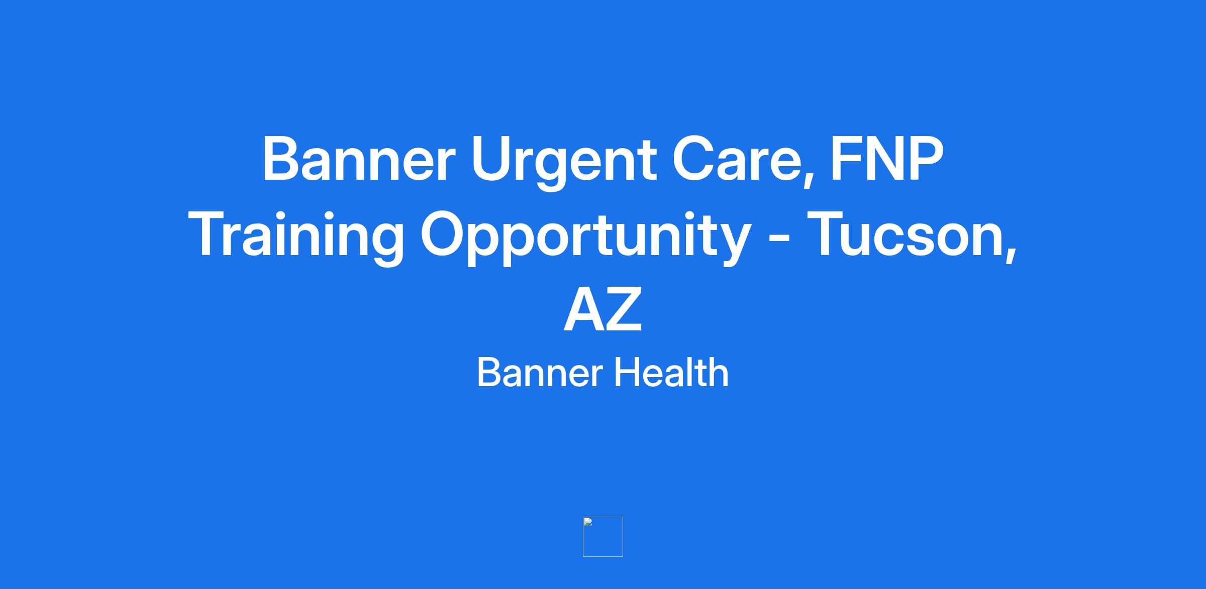 Banner Urgent Care, FNP Training Opportunity - Tucson, AZ