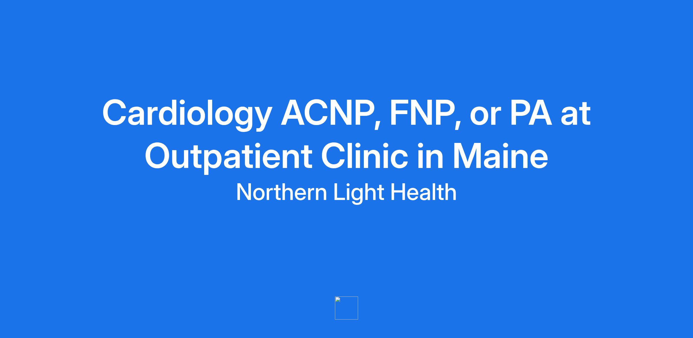 Position Cardiology ACNP, FNP, or PA at Outpatient Clinic in MaineLocation Req ID 84638