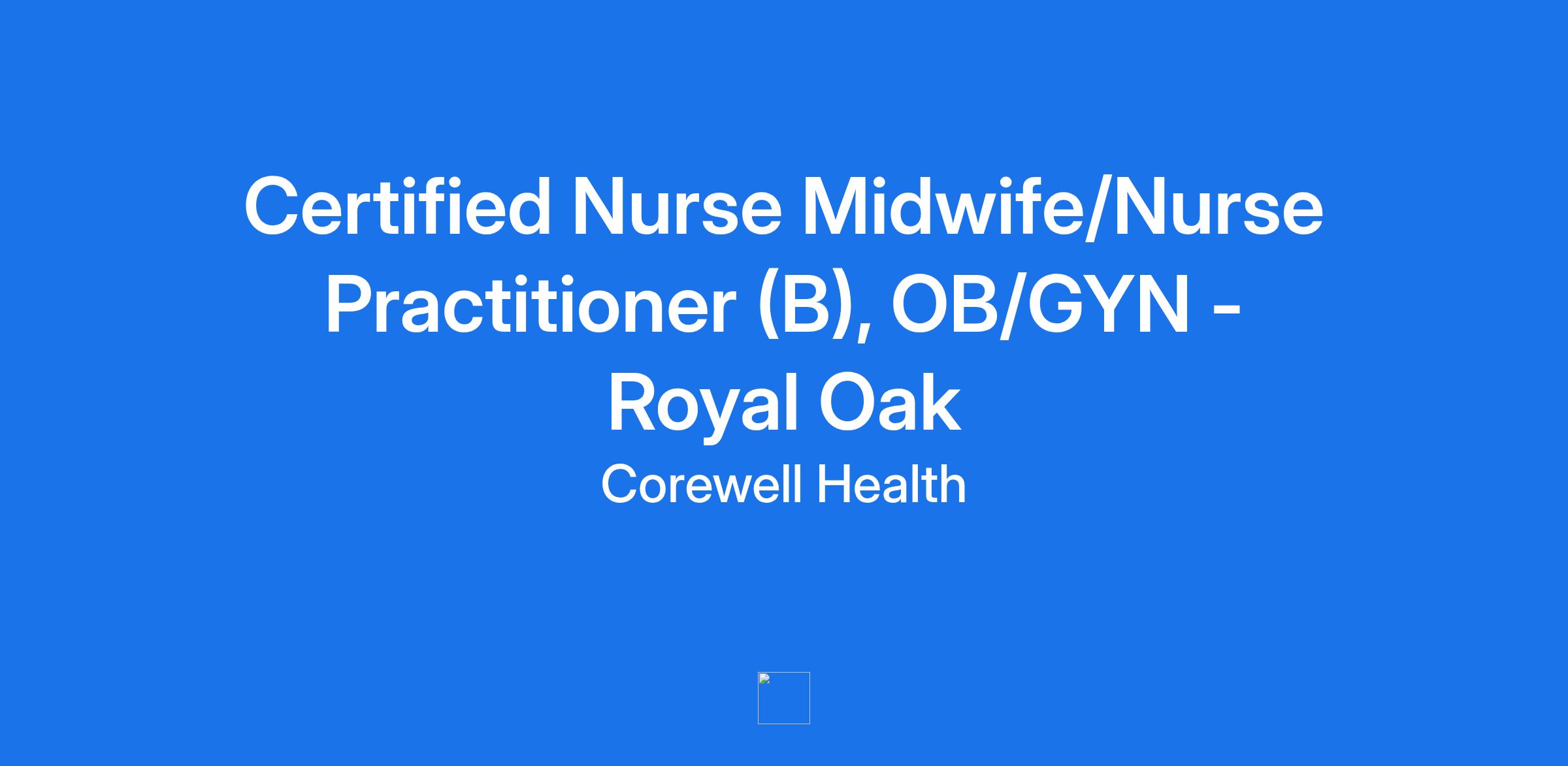 Certified Nurse Midwife/Nurse Practitioner (B), OB/GYN - Royal Oak