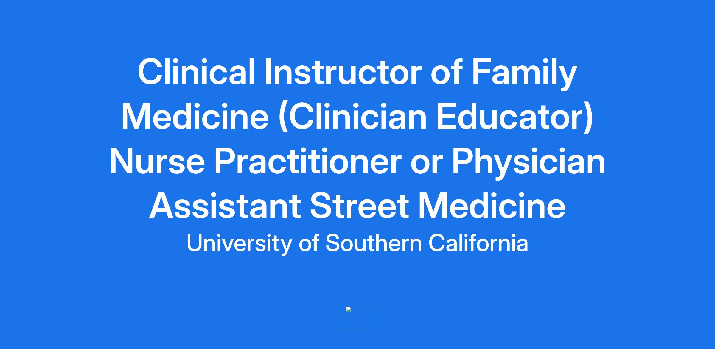 Clinical Instructor of Family Medicine (Clinician Educator) Nurse Practitioner or Physician Assistant Street Medicine
