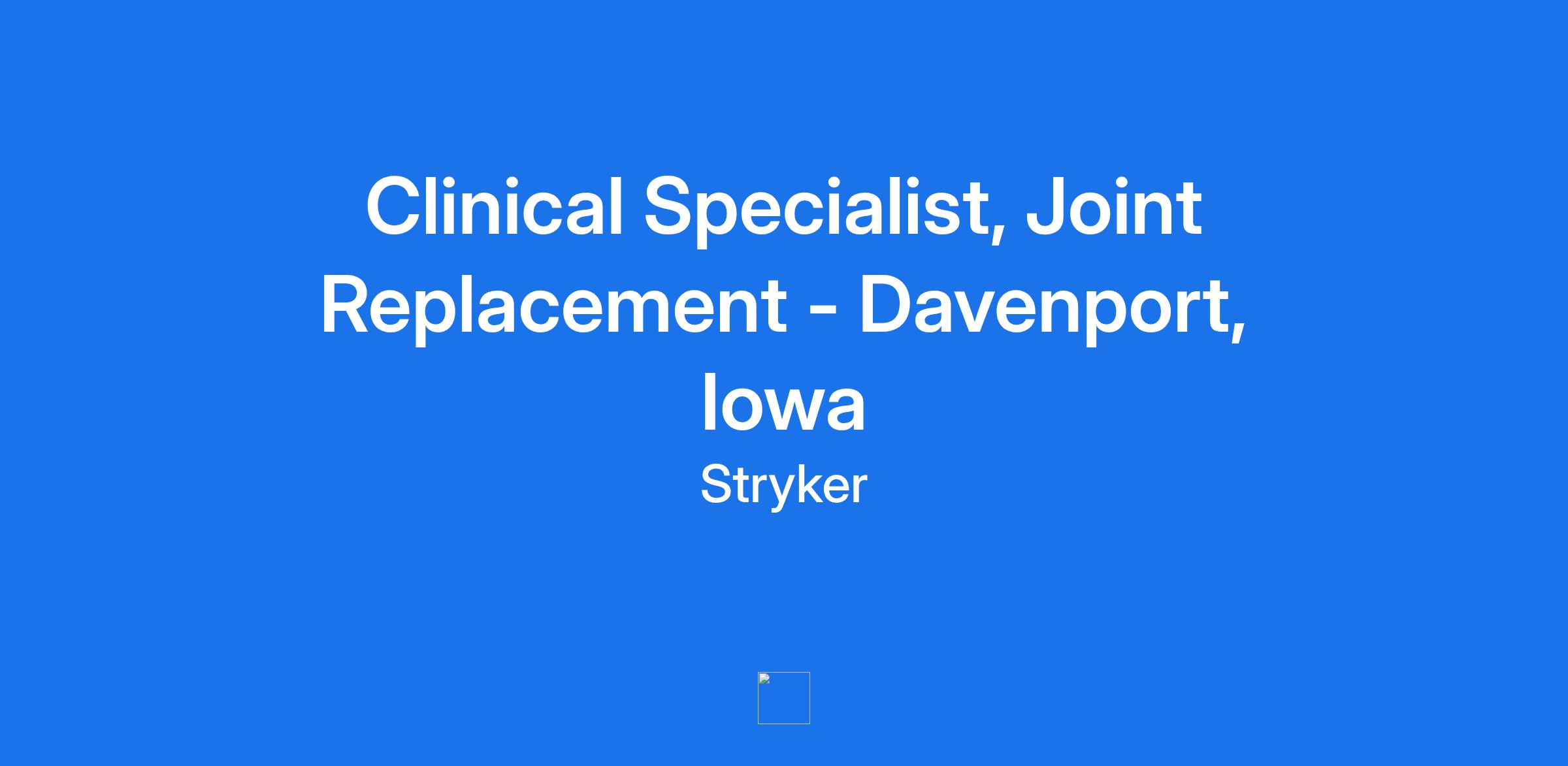 Clinical Specialist, Joint Replacement - Davenport, Iowa