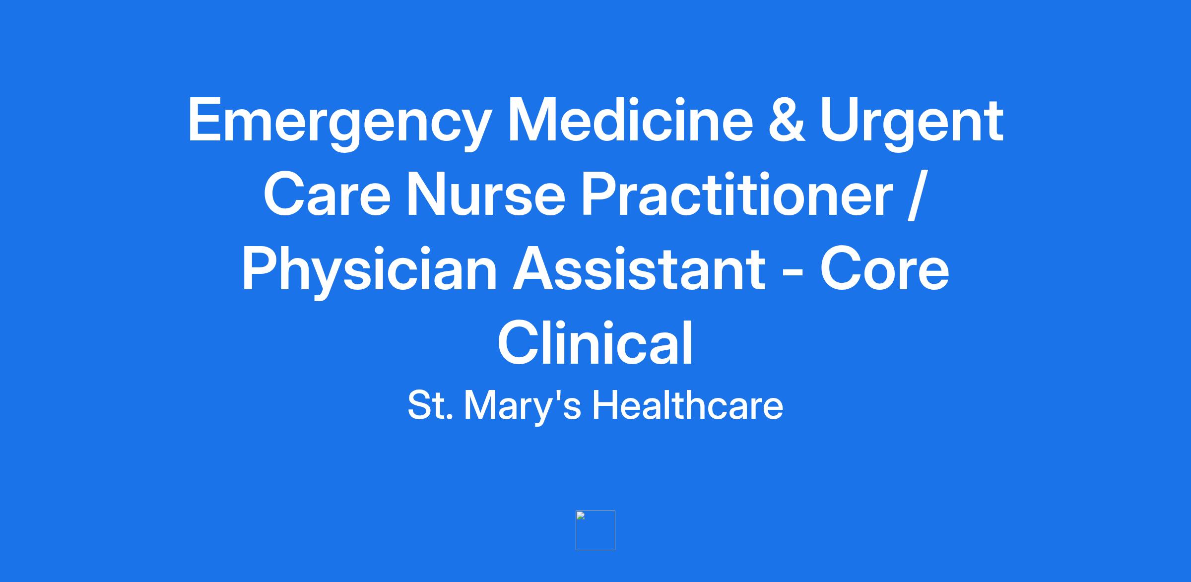Emergency Medicine & Urgent Care Nurse Practitioner / Physician Assistant - Core Clinical