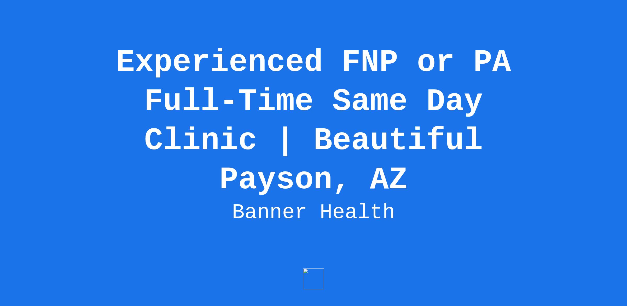 Join **Banner Health** , a Top 5 Large Health System, as an **experienced Family Nurse Practitioner or Physician Assistant** in our **Same Day Care Clinic** in Payson, AZ.Provide a broad range of acute care in a supportive, patient-centered environmentwhile enjoying flexible hours and excellent work/life balance.