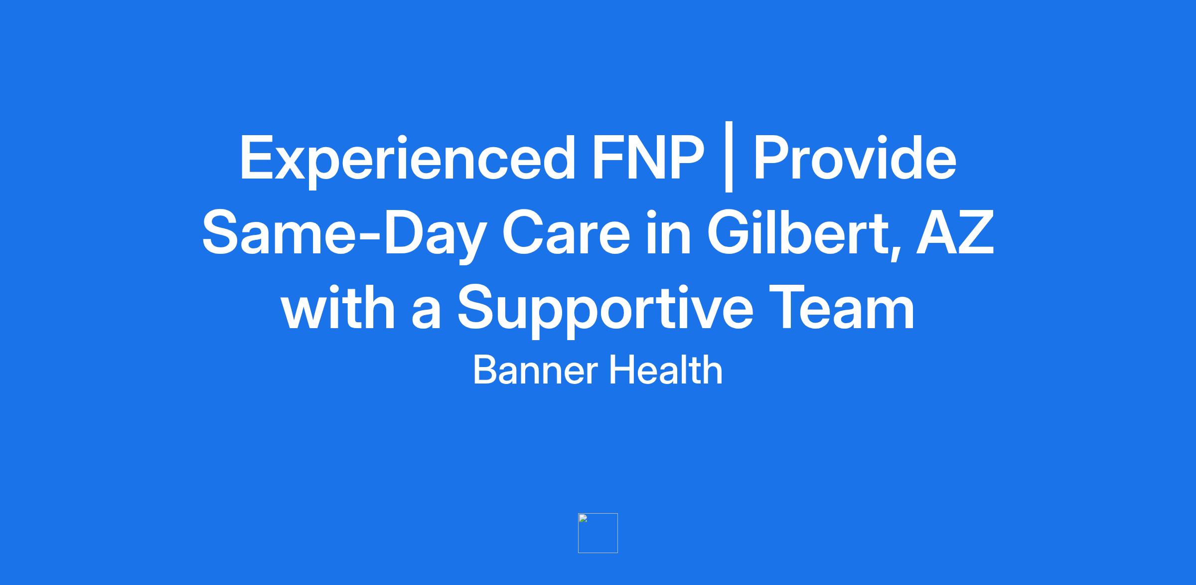 **Banner Health,** **a Top 5 Large Health System and one of the nations premier nonprofit health care networks, is seeking an experiencedFamily Nurse Practitionerto join ourprimary care team at our Banner Health Center in Gilbert, AZ.** This is a full-time outpatient position focused on providing same-day care and ongoing support to patients of all ages in a collaborative, team-oriented environment.