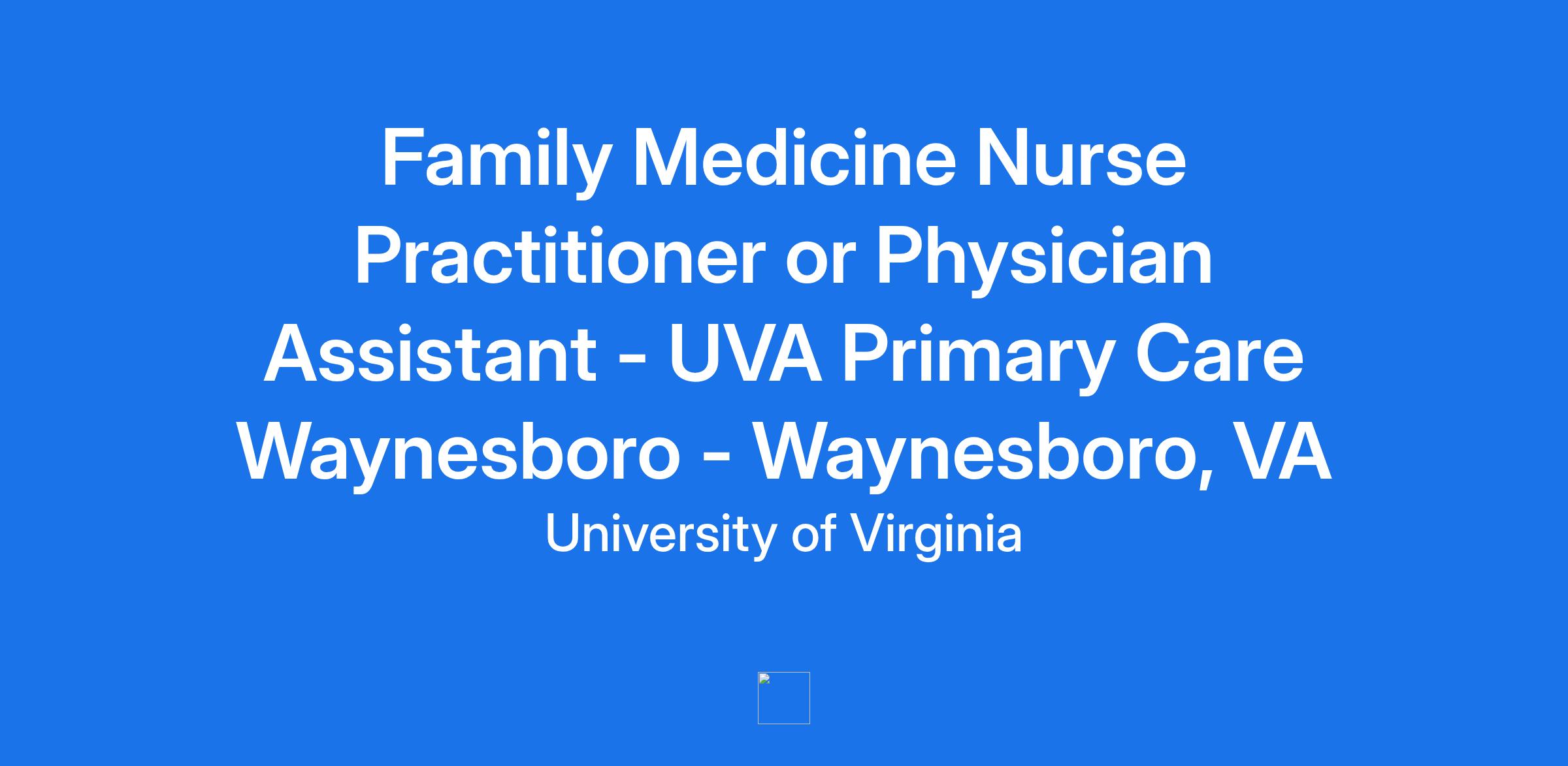 Family Medicine Nurse Practitioner or Physician Assistant - UVA Primary Care Waynesboro - Waynesboro, VA