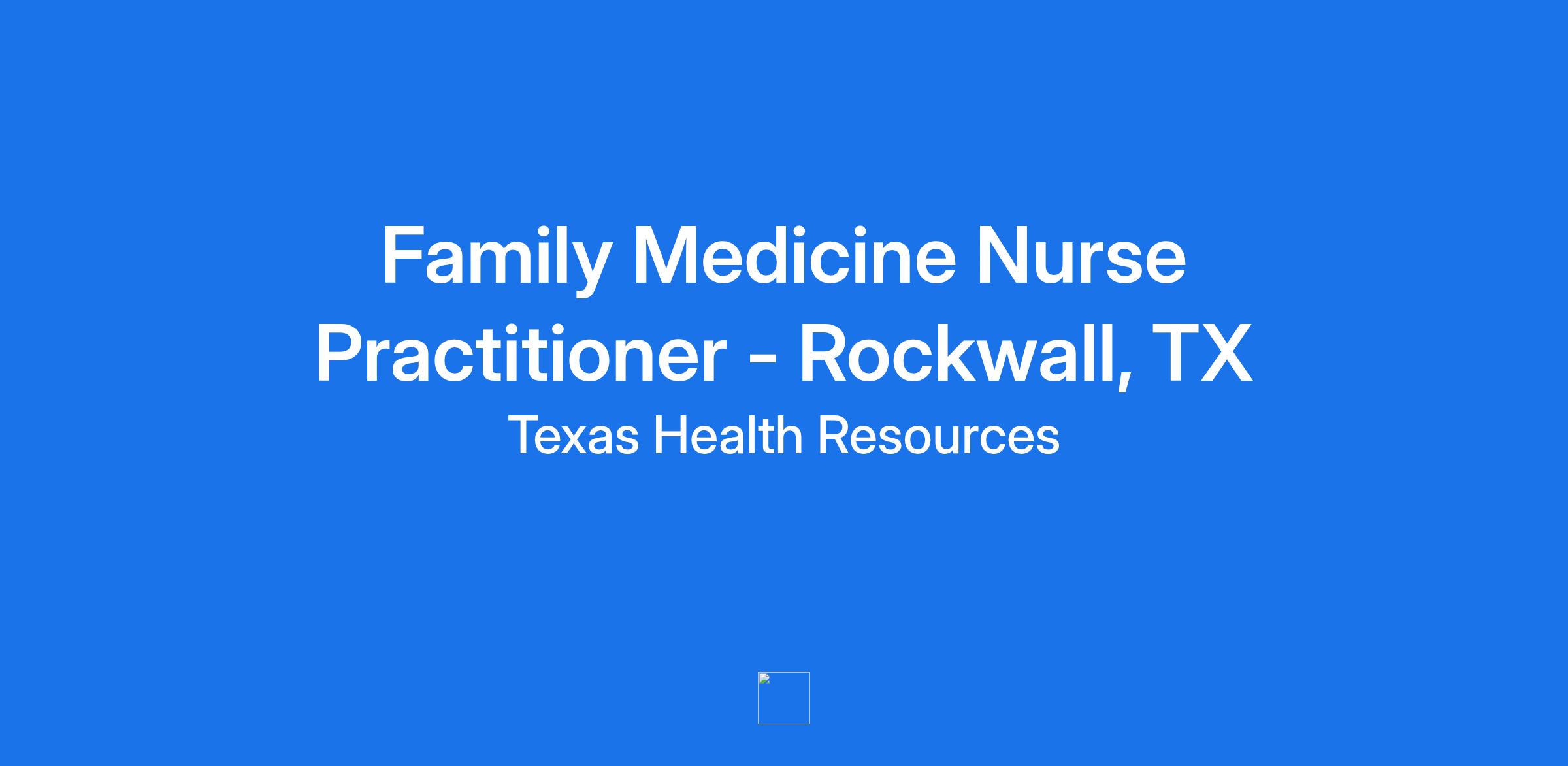 Experience the difference when you join one of the largest faith-based, nonprofit health care delivery systems in the United States and the largest in North Texas. Come explore this excellent **Fulltime** opportunity for a **Family** **Nurse Practitioner** in the friendly city of **Rockwall, Texas near the Harbor Heights area** . Here’s your chance to become a part of a thriving practice working in association with extremely talented and well-trained physicians and staff.