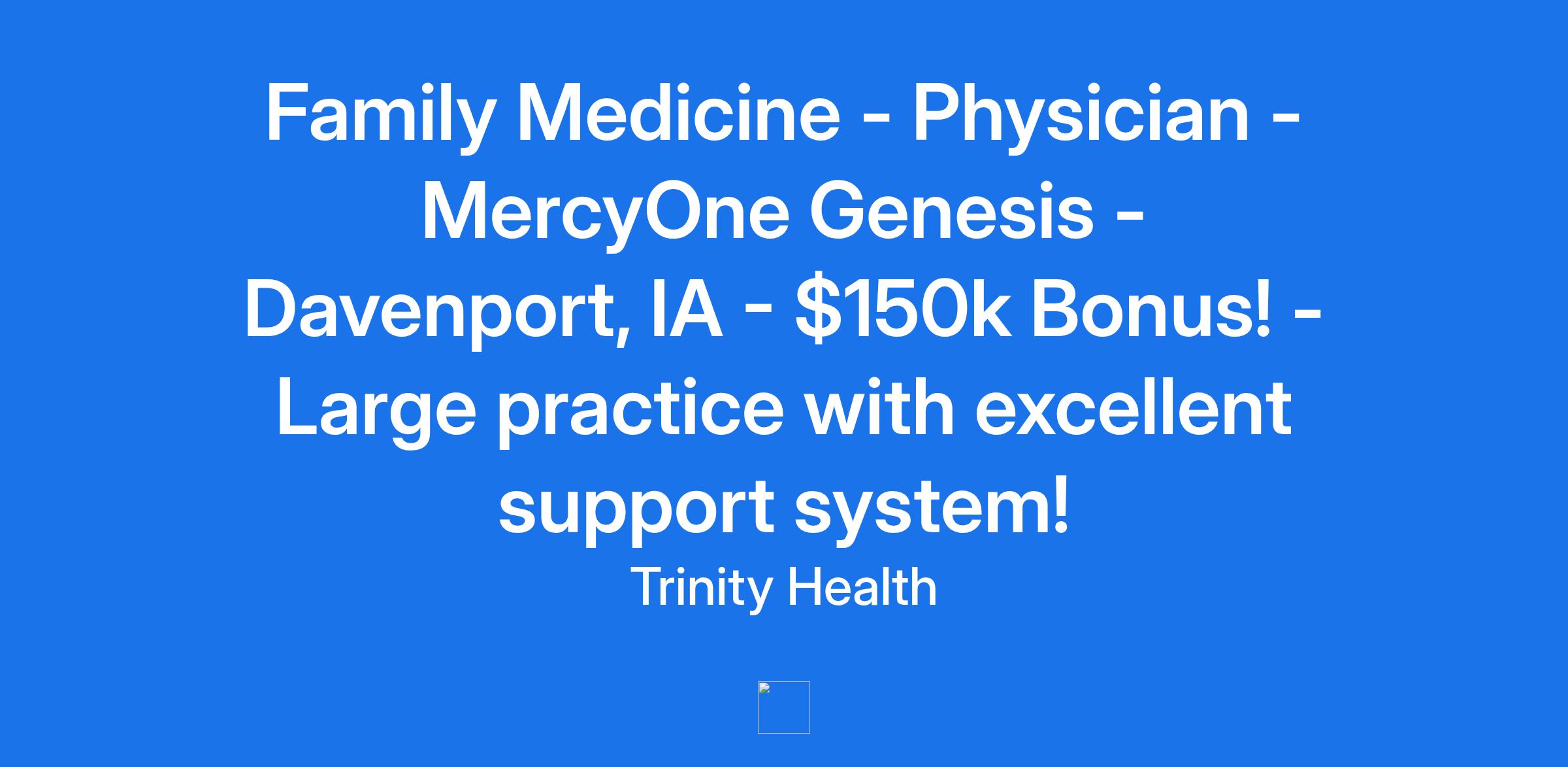 Family Medicine - Physician - MercyOne Genesis - Davenport, IA - $150k Bonus! - Large practice with excellent support system!