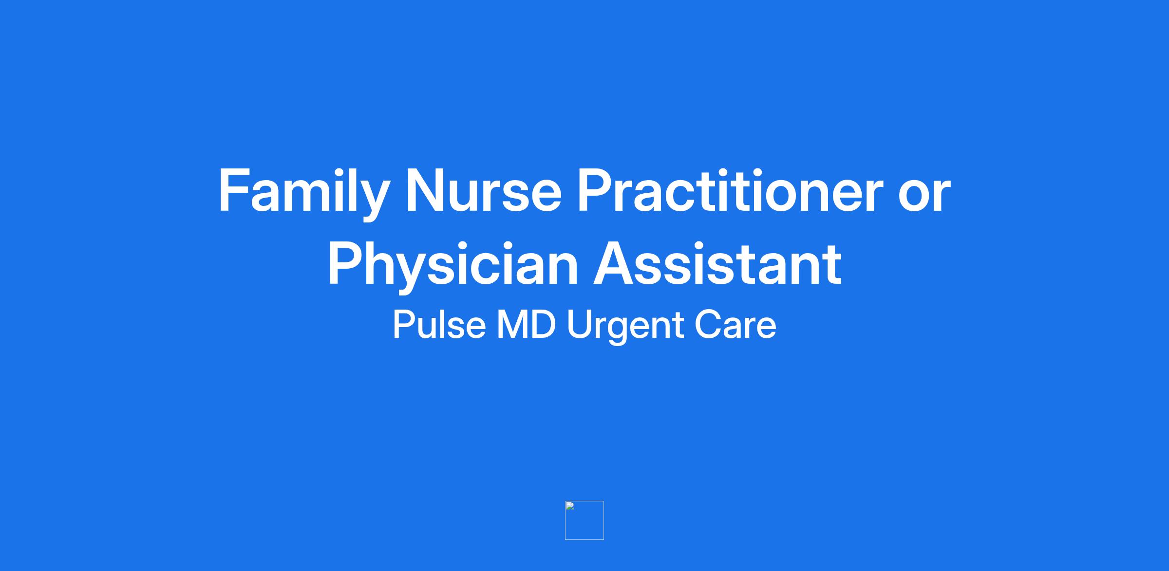 Pulse-MD Urgent Care is a growing chain with locations in (Dutchess, Putnam, Westchester Counties) and is in search of Nurse Practitioner providers. We offer a great working environment and are looking for motivated individuals with strong leadership skills. We offer competitive salary and benefits. FNP must have either Primary Care, Urgent Care, Emergency Room, or Internal Medicine experience. Here are some more requirements.