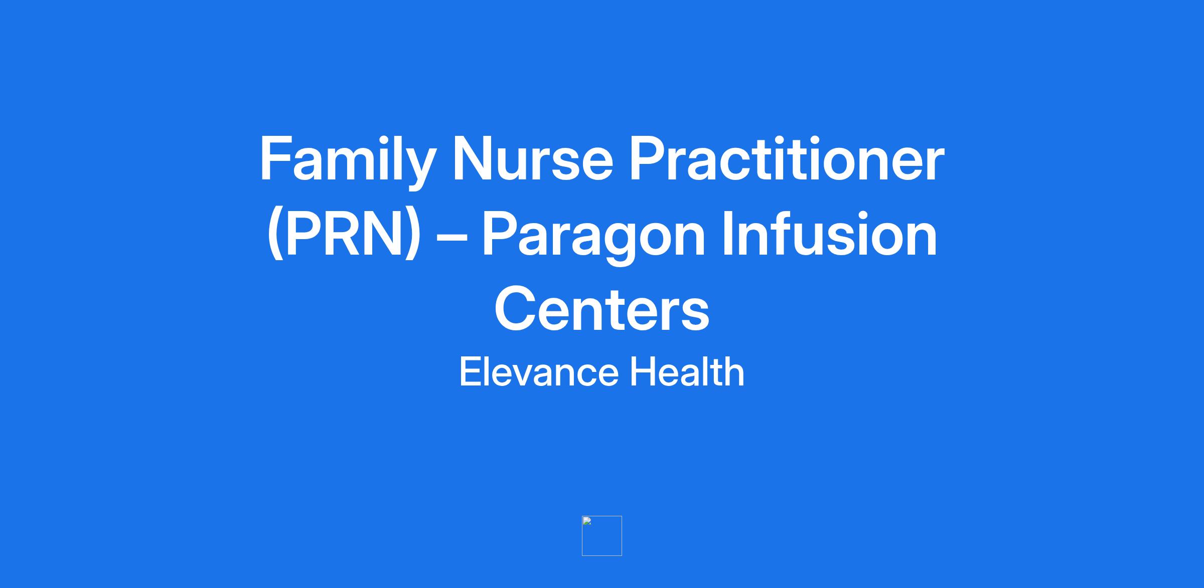 **Family Nurse Practitioner (PRN) – Paragon Infusion Centers**