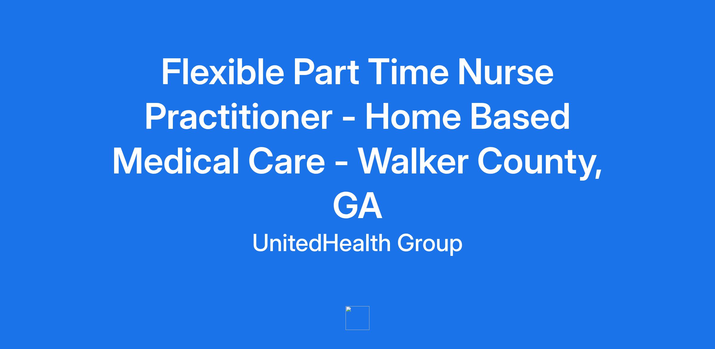 **Optum is seeking a Flexible Part Time Nurse Practitioner to join our Home-based Medical Care team in Walker County, GA. Optum is a clinician-led care organization, that is creating a seamless health journey for patients across the care continuum.**