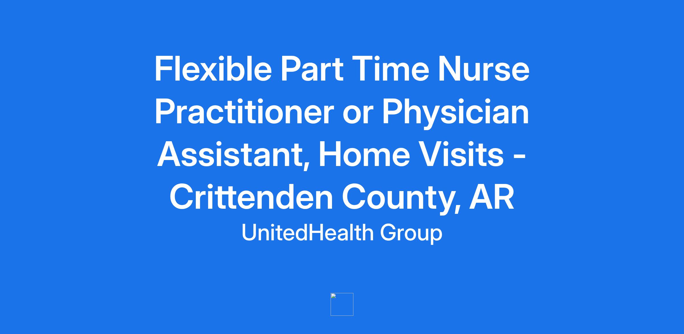 **Optum is seeking a Part-Time Nurse Practitioner or Physician Assistant, In-Home Visits to join our Home-based Medical Care team to see patients for 10 hours per week in Crittenden County, AR. Optum is a clinician-led care organization, that is creating a seamless health journey for patients across the care continuum.** **Position is a minimum of 10 hours/week.**
