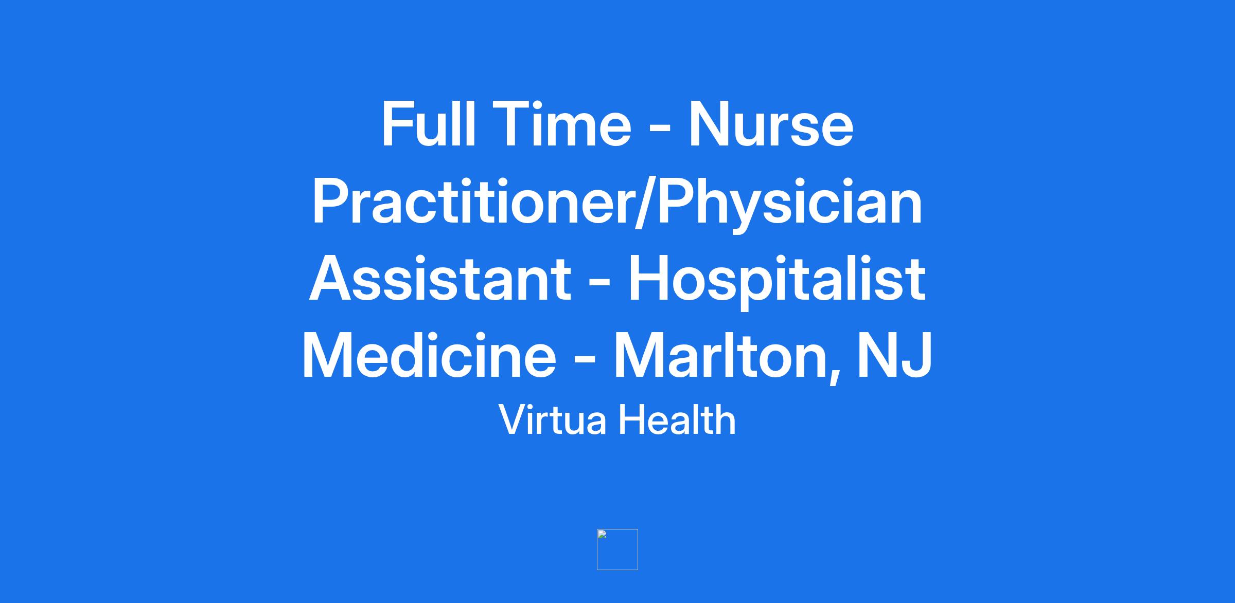 Full Time - Nurse Practitioner/Physician Assistant - Hospitalist Medicine - Marlton, NJ