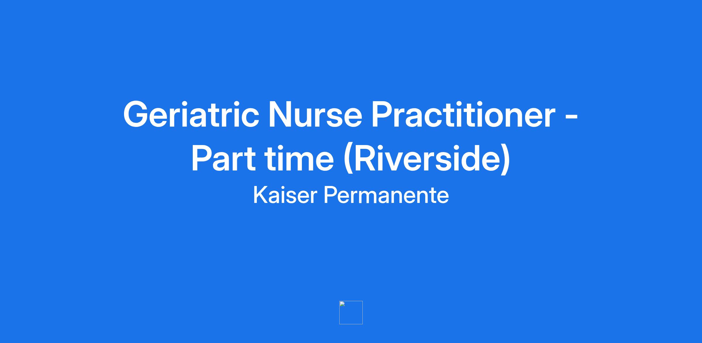 TITLE: Geriatric Nurse Practitioner - Part time (Riverside)