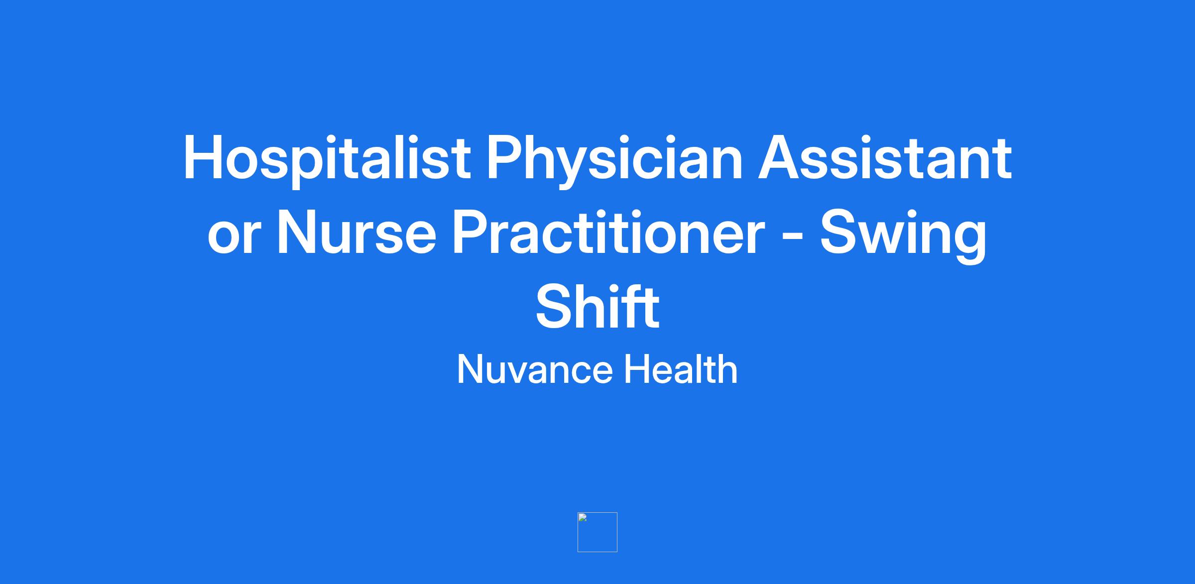 Hospitalist Physician Assistant or Nurse Practitioner - Swing Shift