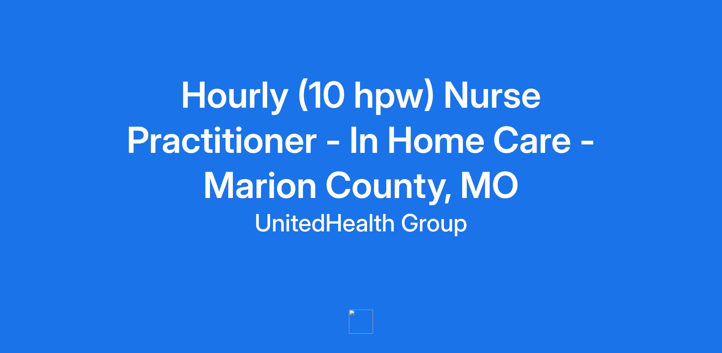 **Optum is seeking a Hourly (10 hpw) Nurse Practitioner to join our Home-based Medical Care team in Marion County, MO. Optum is a clinician-led care organization, that is creating a seamless health journey for patients across the care continuum.**