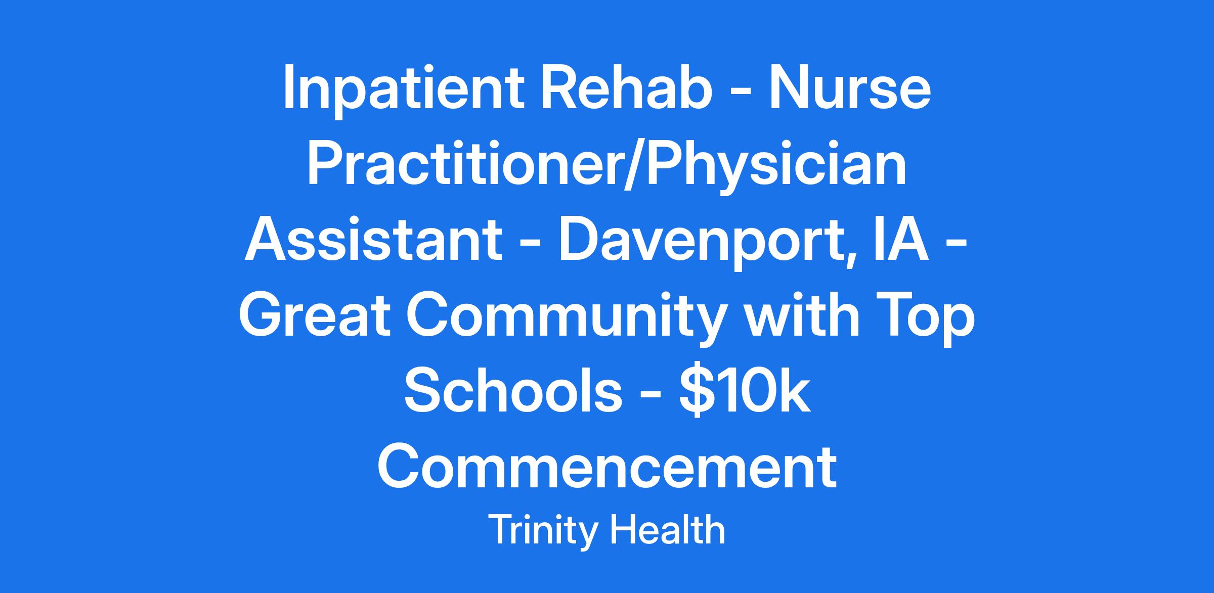 Inpatient Rehab - Nurse Practitioner/Physician Assistant - Davenport, IA - Great Community with Top Schools - $10k Commencement