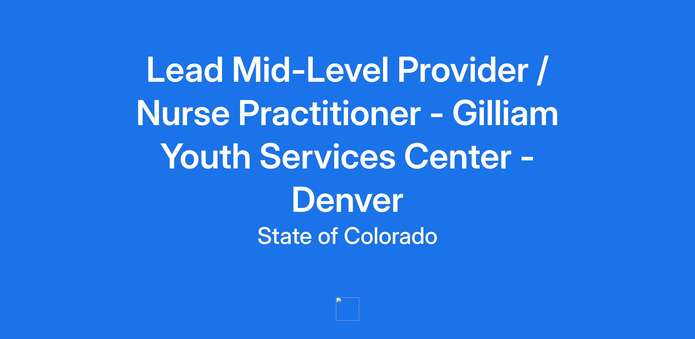Lead Mid-Level Provider / Nurse Practitioner - Gilliam Youth Services Center - Denver