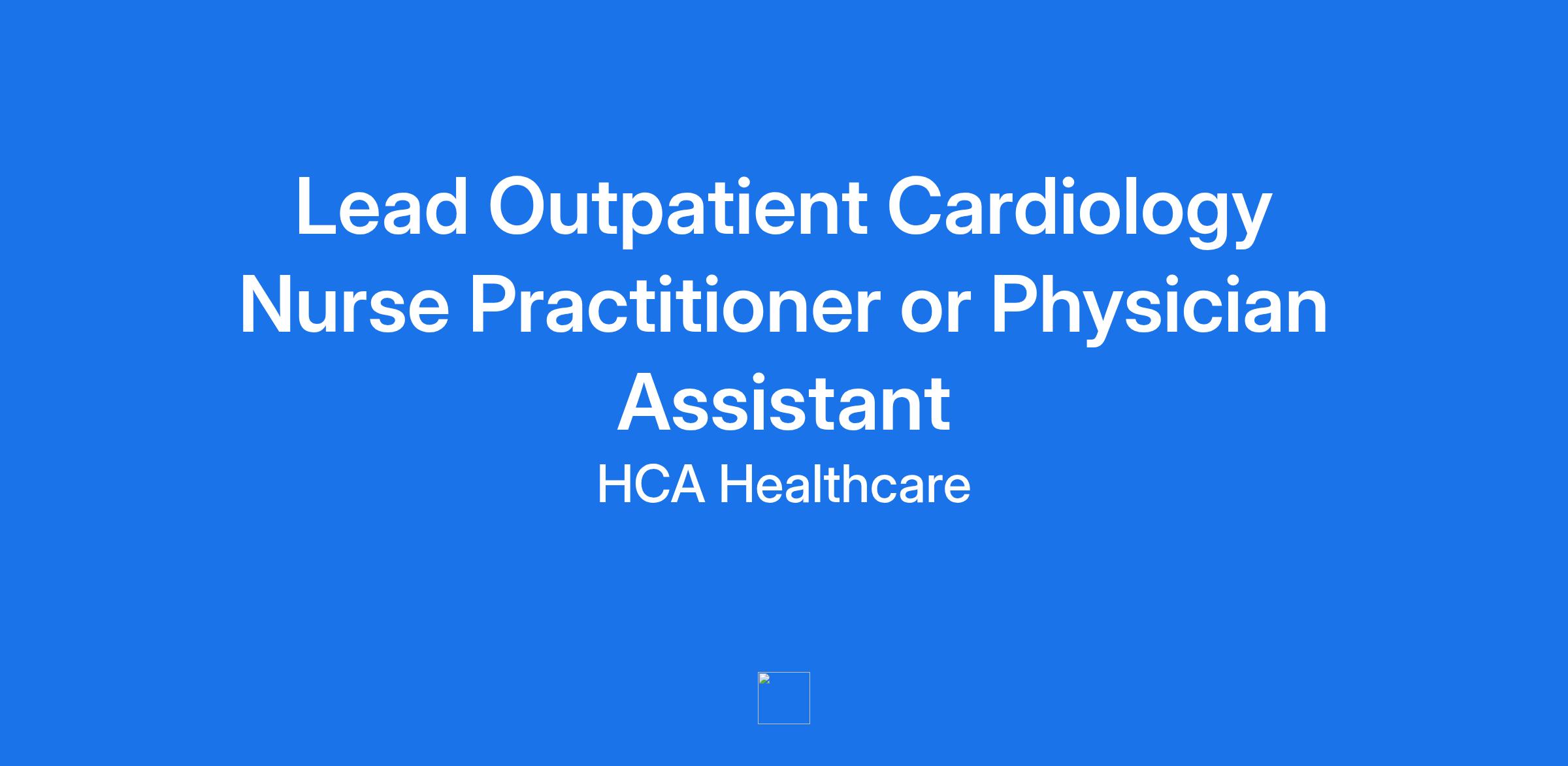 Lead Outpatient Cardiology Nurse Practitioner or Physician Assistant