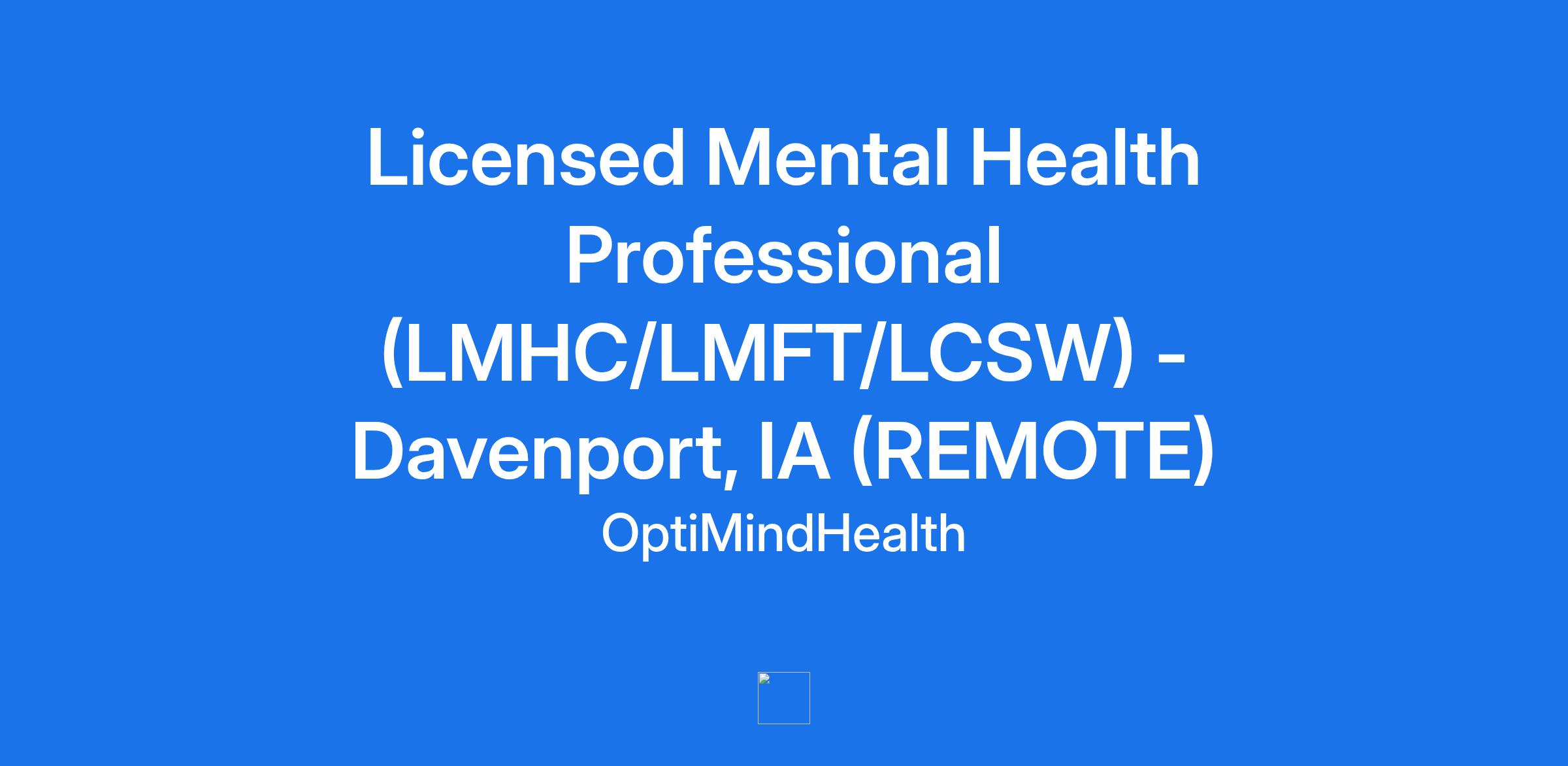 Licensed Mental Health Professional (LMHC/LMFT/LCSW) - Davenport, IA (REMOTE)