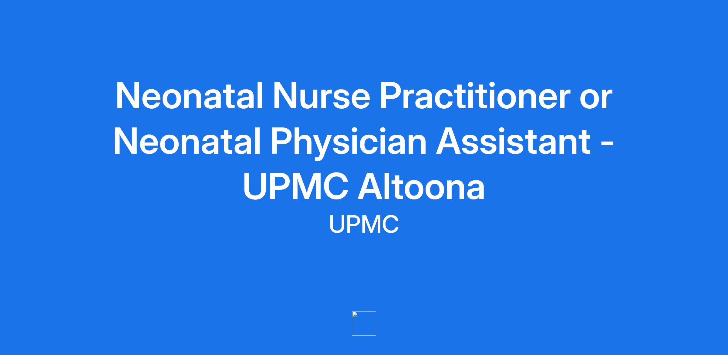 Neonatal Nurse Practitioner or Neonatal Physician Assistant - UPMC Altoona
