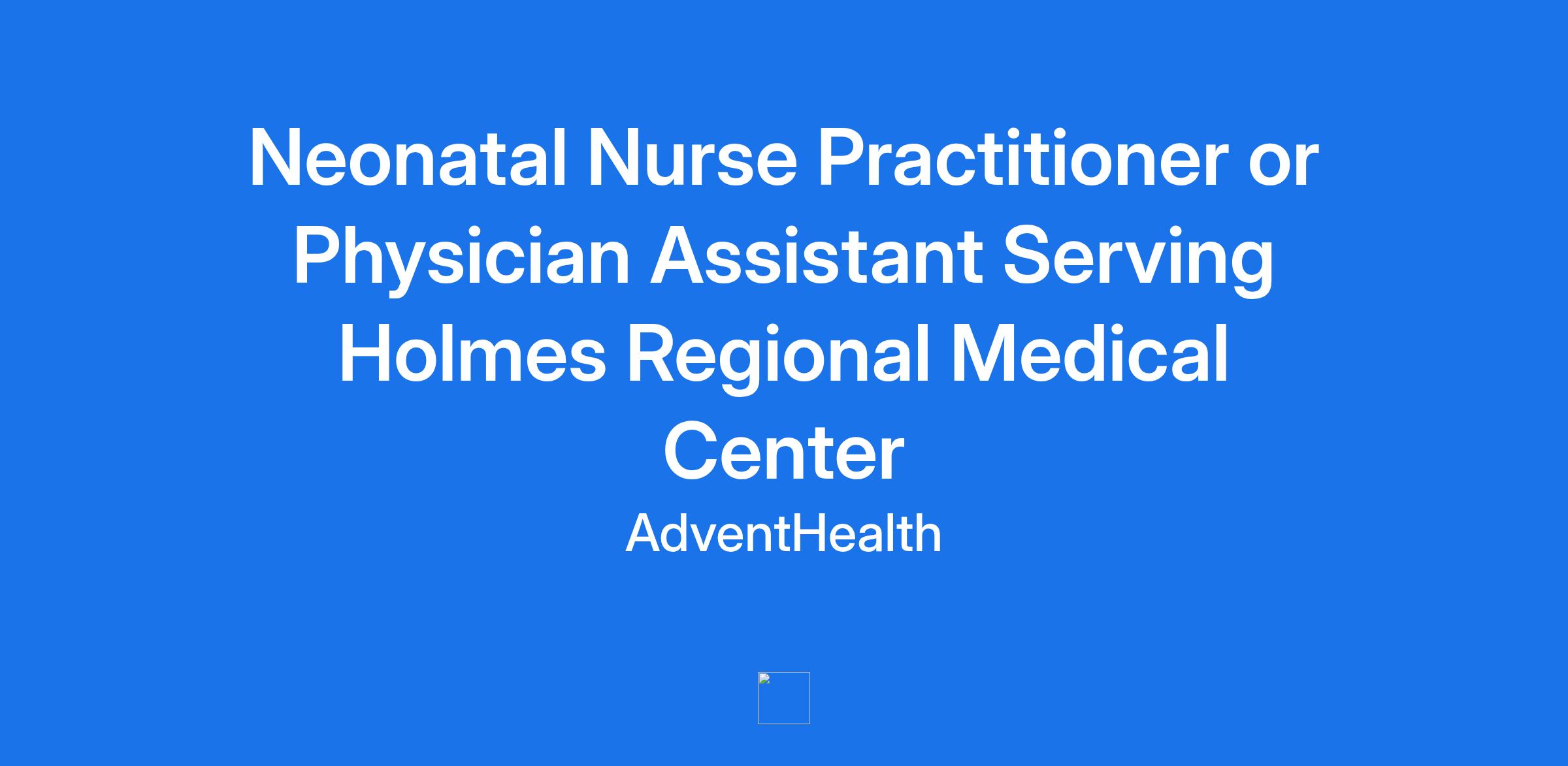 **Neonatal Nurse Practitioner or Physician Assistant Opportunities available** in the **Melbourne, Florida** area. AdventHealth for Children and AdventHealth Medical Group are looking for dynamic, innovative and energetic neonatal nurse practitioners or PA-C at the Level 2 NICU at Holmes Regional Medical Center (HRMC) in Melbourne, Florida. The NNP/PA-C in collaboration with the neonatologist will cover the 10 bed Level 2 NICU at HRMC along with the newborn service.