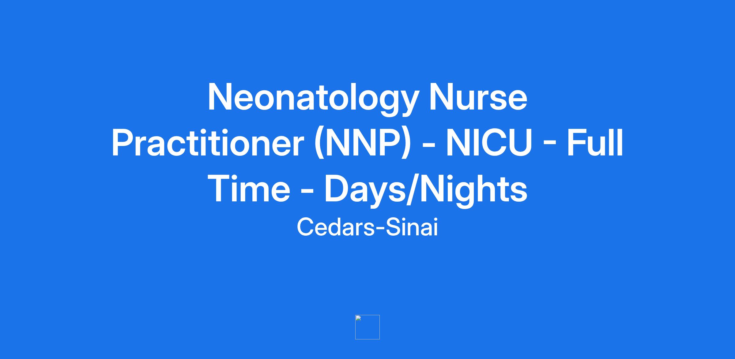 **Working Title** : Neonatology Nurse Practitioner (NNP) - NICU - Full Time - Days/Nights