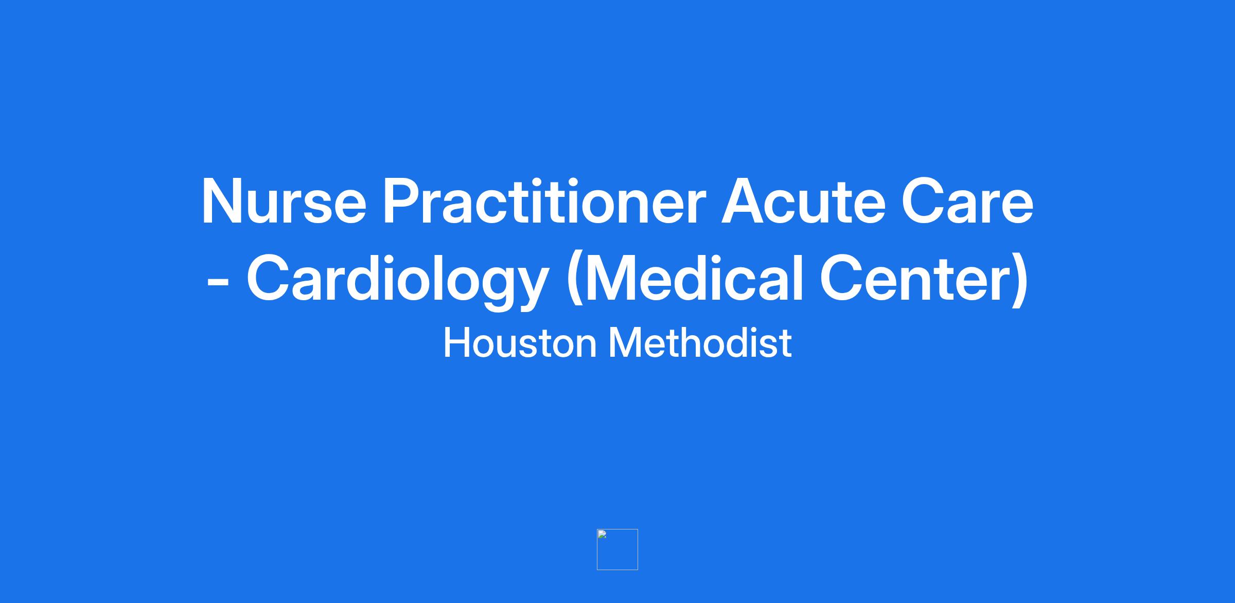 Nurse Practitioner Acute Care - Cardiology (Medical Center)