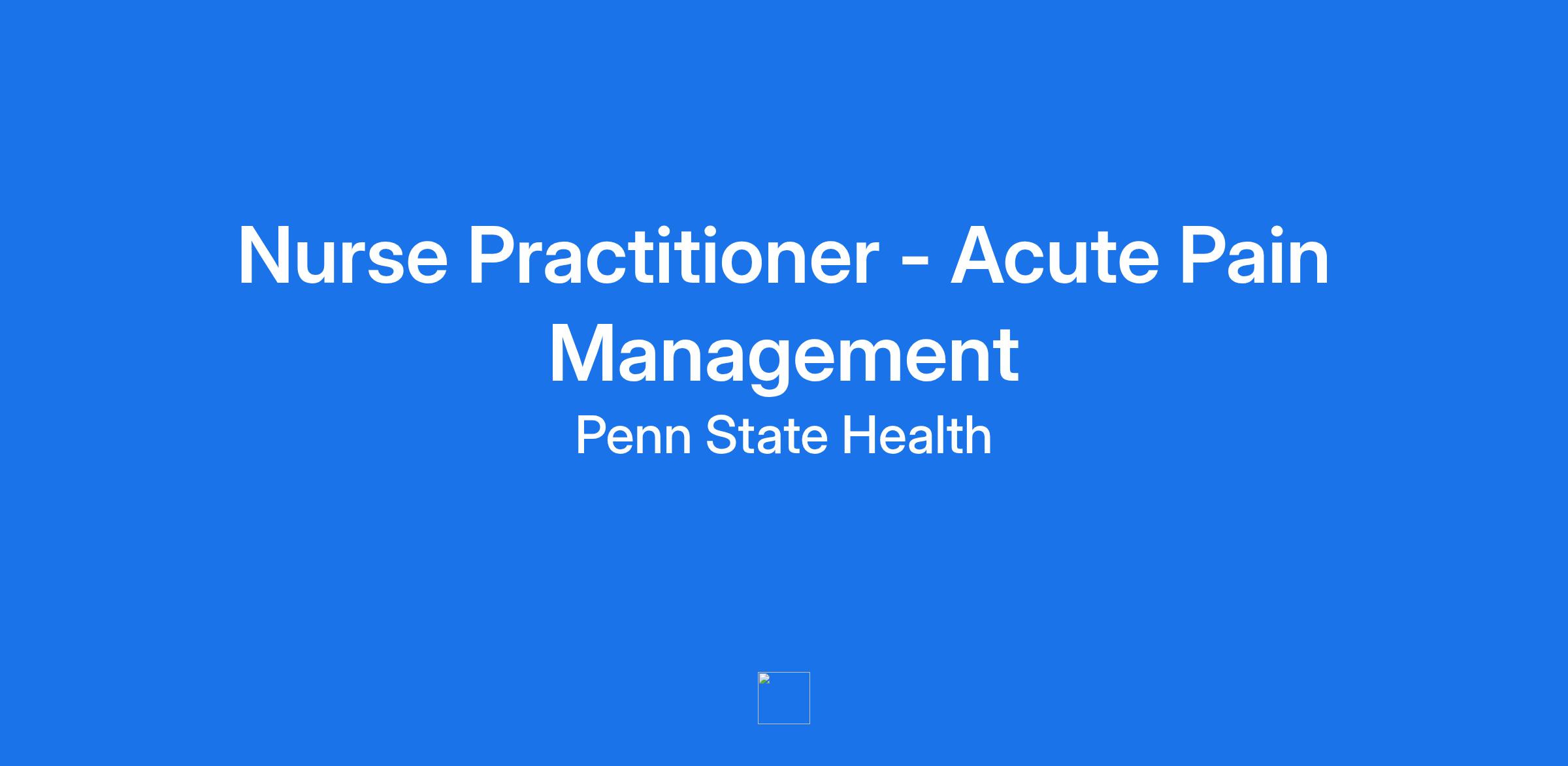 **Position** Nurse Practitioner - Acute Pain Management