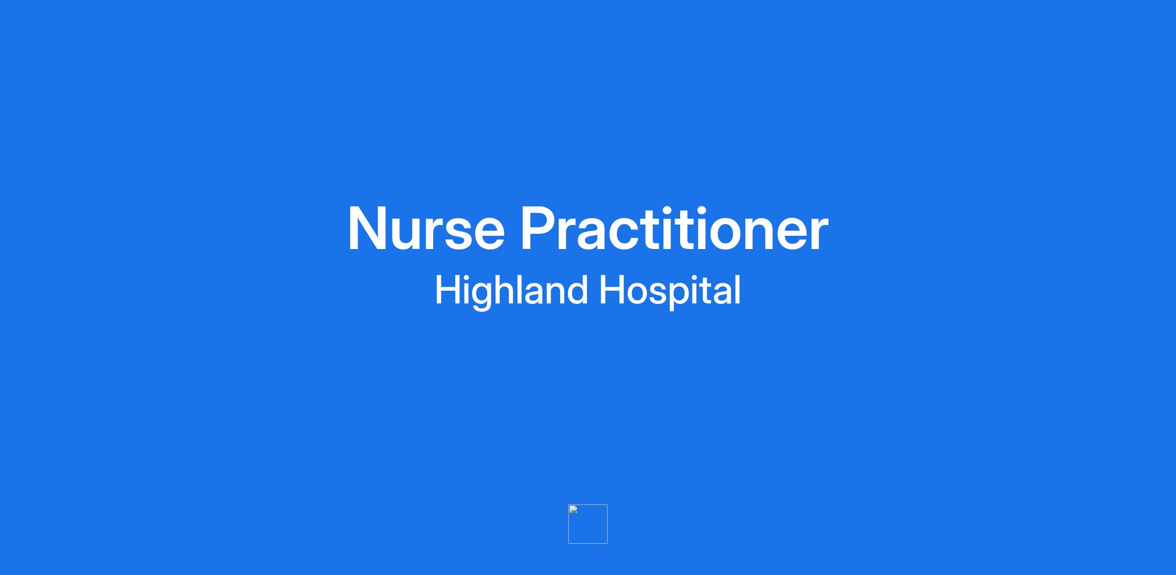Family Nurse Practitioner - Full Time - Highland Family Medicine