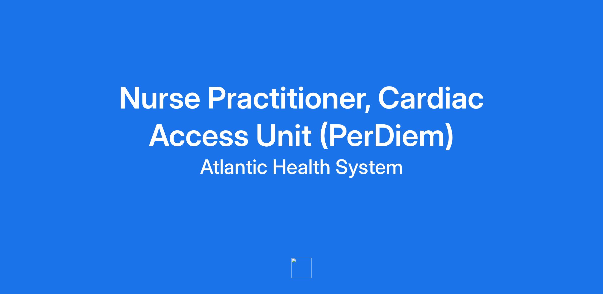 Atlantic Health System, one of New Jersey's largest non-profit healthcare networks, is seeking a per diem Nurse Practitioner to join the Cardiac Access Unit at Morristown Medical Center. Our Atlantic Health System Heart Care team at the Cardiac Access Unit is dedicated to the care for patients who will undergo surgeries or cardiac procedures. This specialized 28-bed unit is located in Gagnon Cardiovascular Institute at Morristown Medical Center.