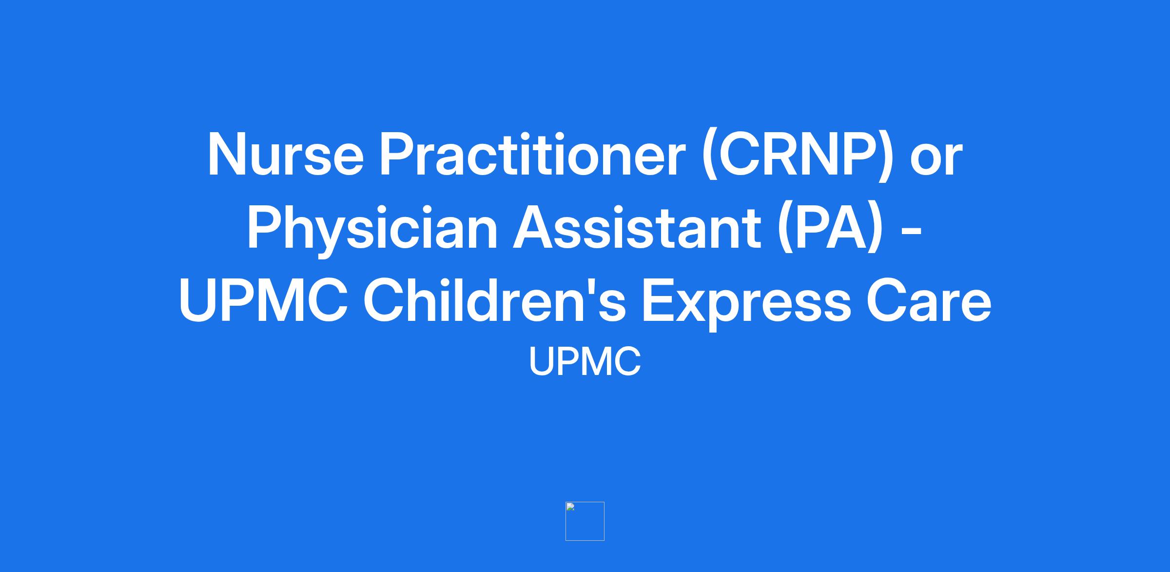 Nurse Practitioner (CRNP) or Physician Assistant (PA) - UPMC Children's Express Care