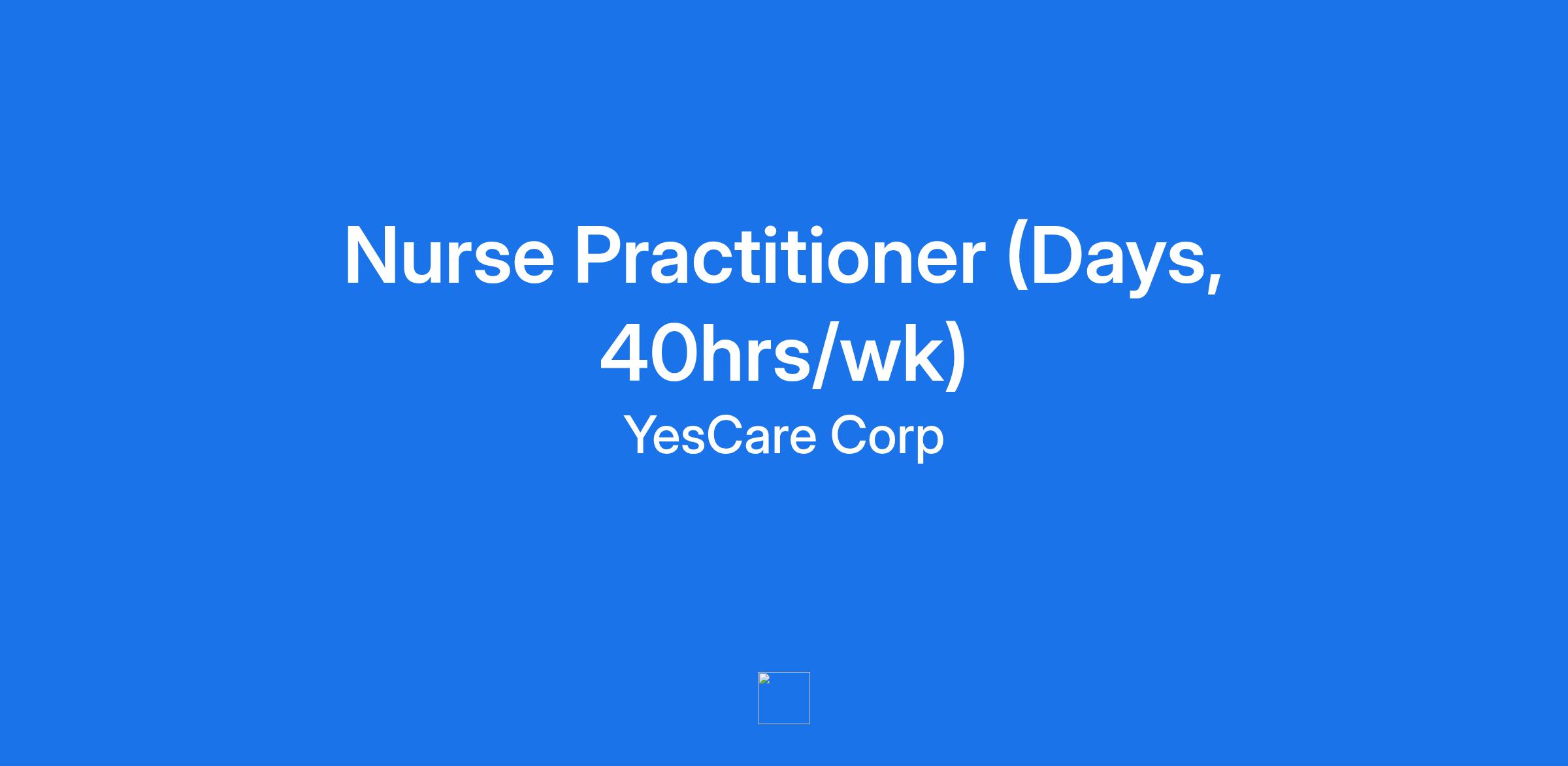 Nurse Practitioner (Days, 40hrs/wk)