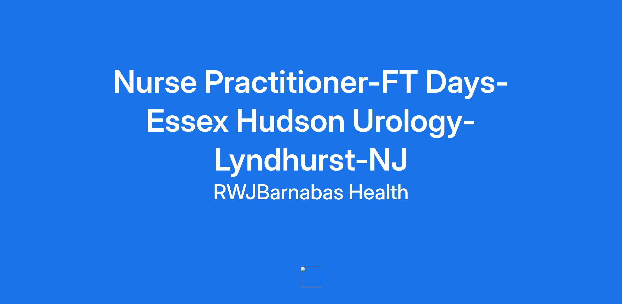 Nurse Practitioner-FT Days- Essex Hudson Urology- Lyndhurst-NJReq #:0000171976