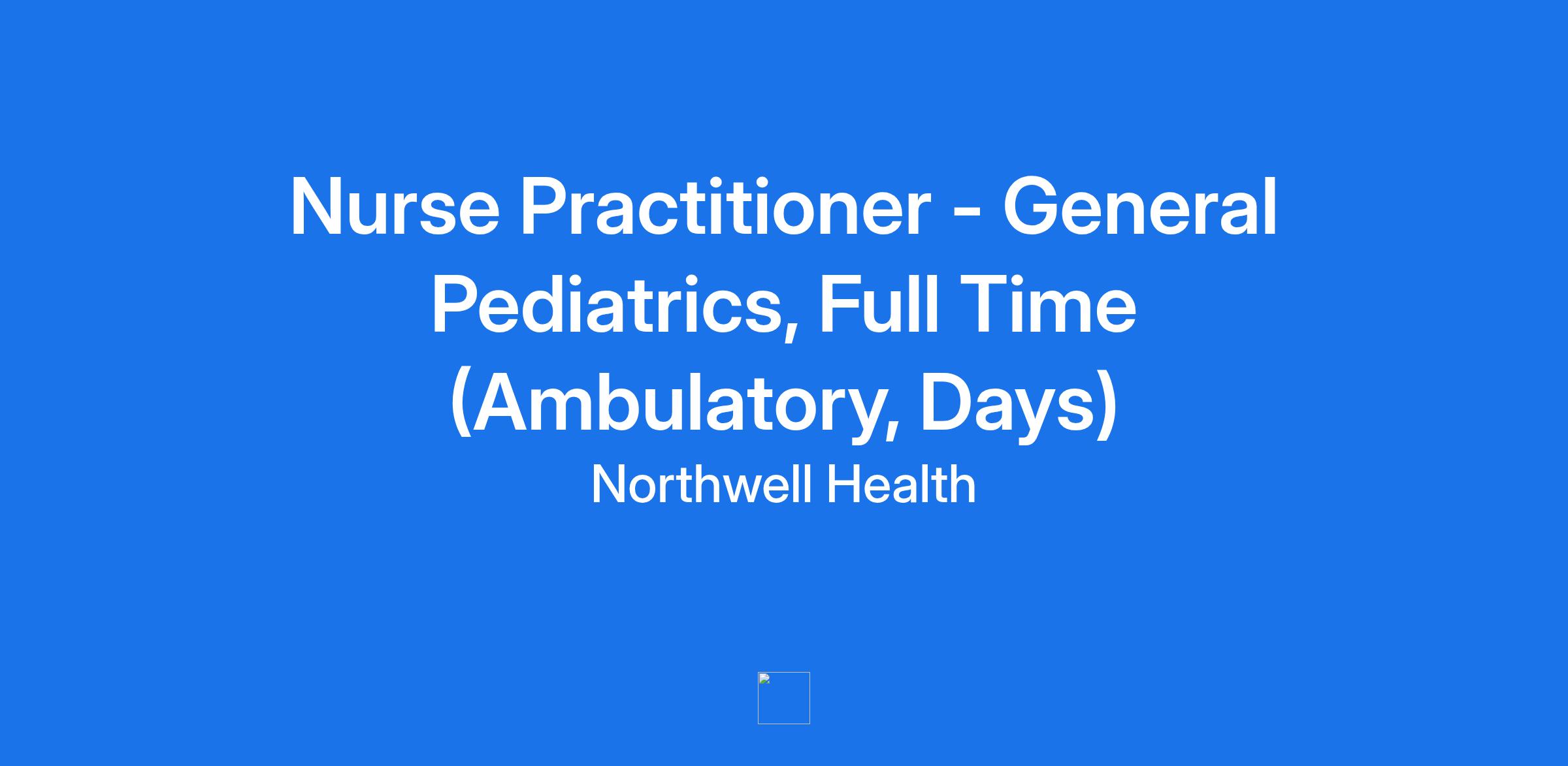 Nurse Practitioner - General Pediatrics, Full Time (Ambulatory, Days)