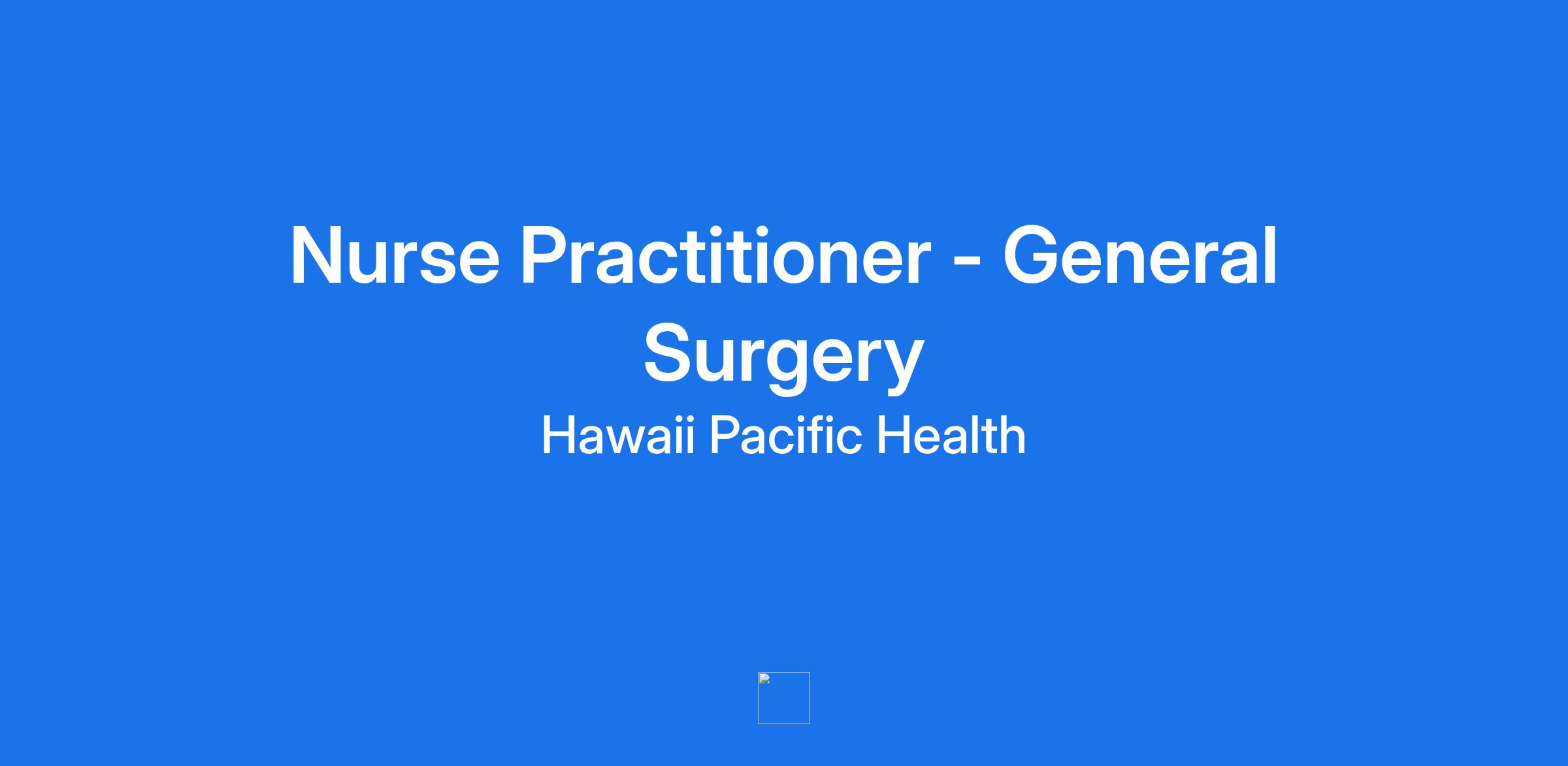 If you enjoy working with people and believe in warm, compassionate health care, you could be the next Nurse Practitioner in our General Surgery department. In this role, you will deliver direct patient care, including evaluation, treatment and technical procedures to a specific group of patients, as well as provide health education, referrals to other disciplines, and consultation with other allied health personnel. We are looking for someone dedicated and experienced, with excellent care and communication skills and a commitment to our vision of delivering the highest quality health care to Hawai‘i’s people.
